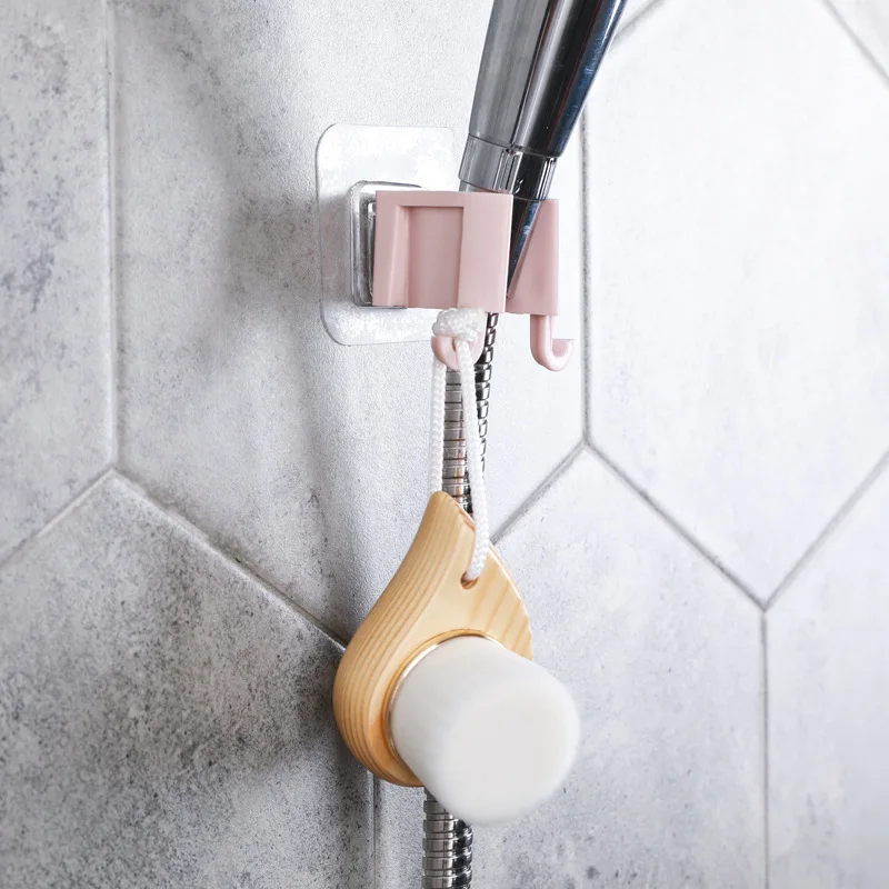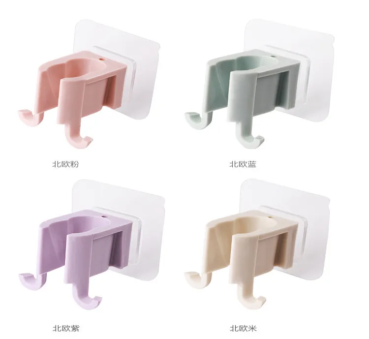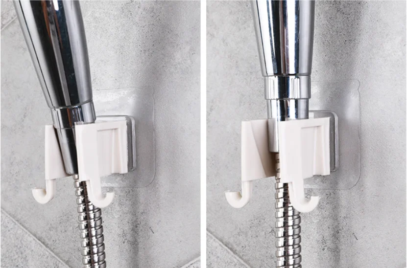 Shower Head Holder Self-Adhesive Showerhead Bracket Wall Mount With 2 Hooks Stand SPA Bathroom Universal ABS 1pc