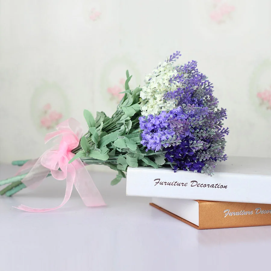 10 Heads Romantic Provence Lavender Silk Artificial Flowers Purple Bouquet Plastic Fake Flower White for Home Wedding Decoration
