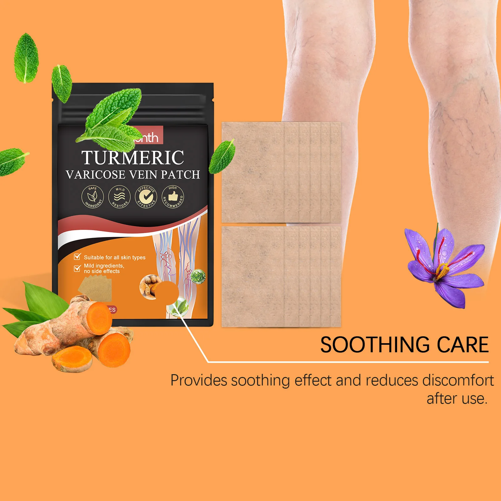 • Cold compress vein care patch :The cold compress feature of the vein care patch helps to reduce swelling and inflammation, providing additional relief to the affected area.