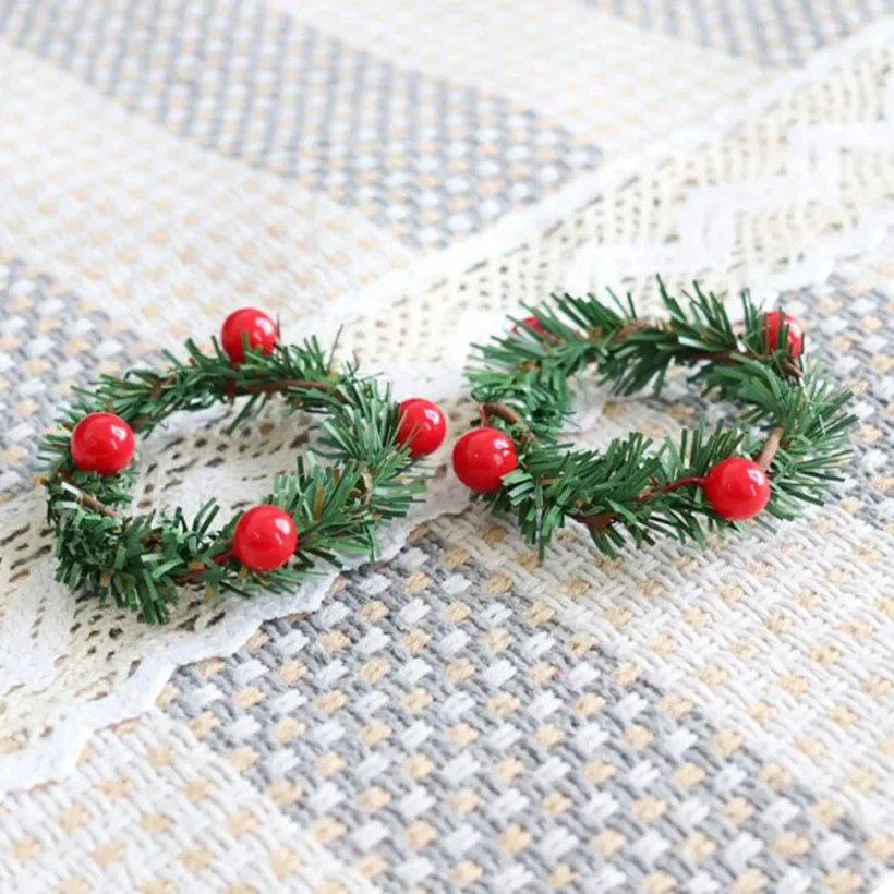 1pc Christmas Red Fruit PVC Pine Needle Napkin Ring Holders Xmas Table Decoration Home Wedding Banquet Hotel Table Sup