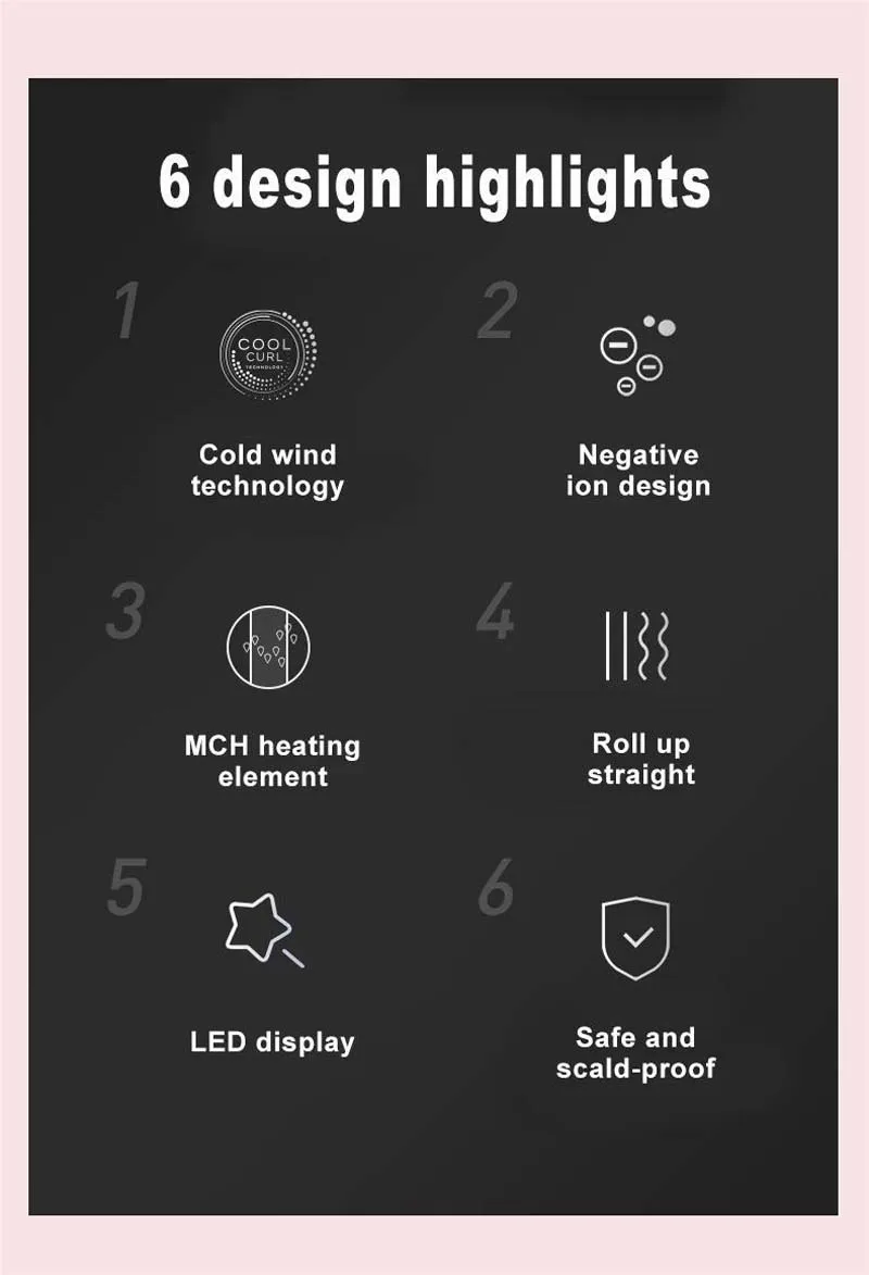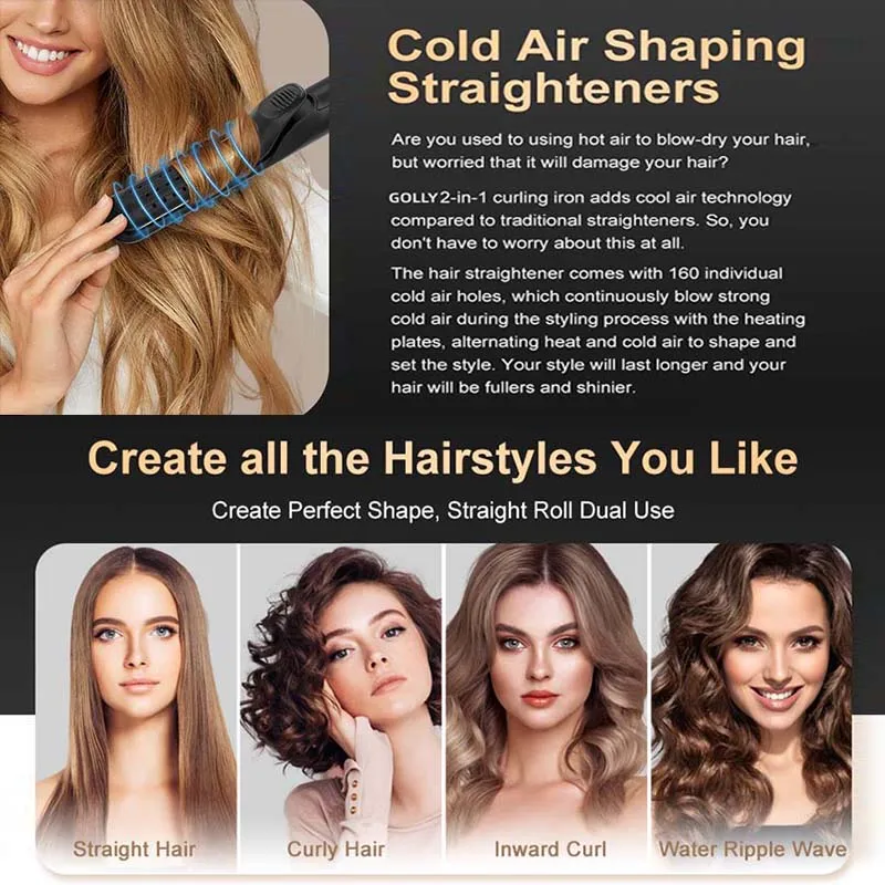 Hair Straightening and Curling Iron with Cold Air: This hair styling tool is designed to cater to your styling needs, whether you prefer sleek straight hair or voluminous curls. Unique cold air shaping function cools down your hair and makes the effect last longer.