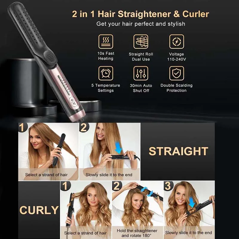 PTC Heating Technology: Equipped with PTC heating, this hair straightening iron ensures fast and even heat distribution, reducing styling time and providing consistent results. Enjoy salon results from the comfort of your own home with this innovative hair tool.