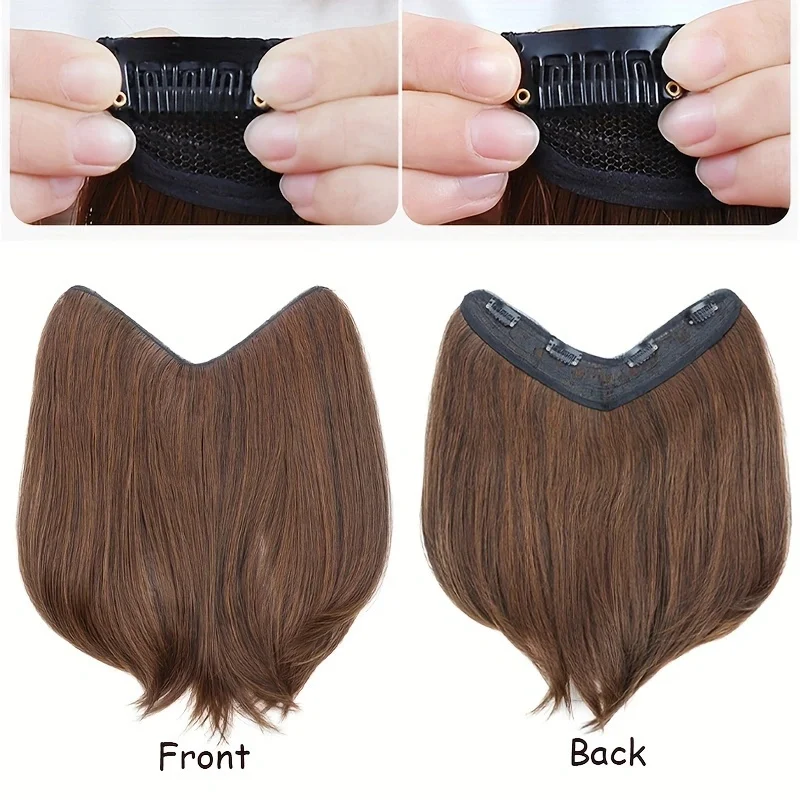 20/30cm Synthetic Short Straight Internal Buckle V-shaped Half Head 4Clips Hair Extension Invisible Hairpiece for Women