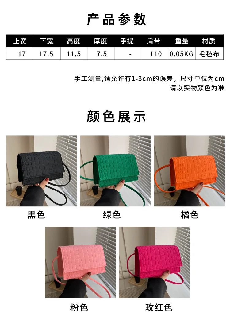 2023 Fashion Women Bags Designer Luxury Square Felt Crossbody Bags Female Totes Shoulder Handbags for Women Messenger Bag