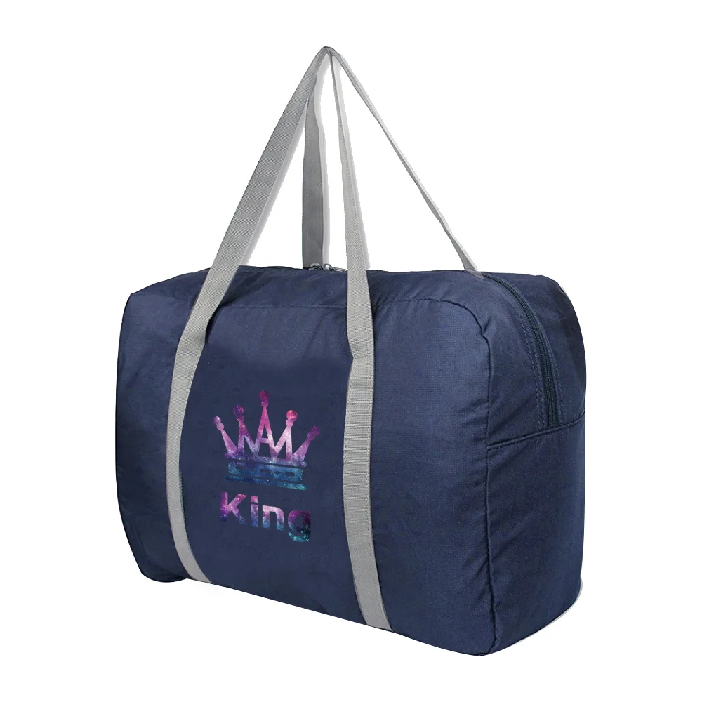 2023 New Women Tote Travel Bags Foldable Duffle Bag Storage Grocery Clothes Organizer King Printed Men Carry-on Luggage Handbags