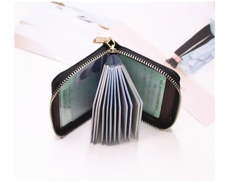 26 Card Slots for Men and Women Multi-card Sleeve Small Wallet New Zipper Card Page Ladies Driver’s License Card Bag Horizontal