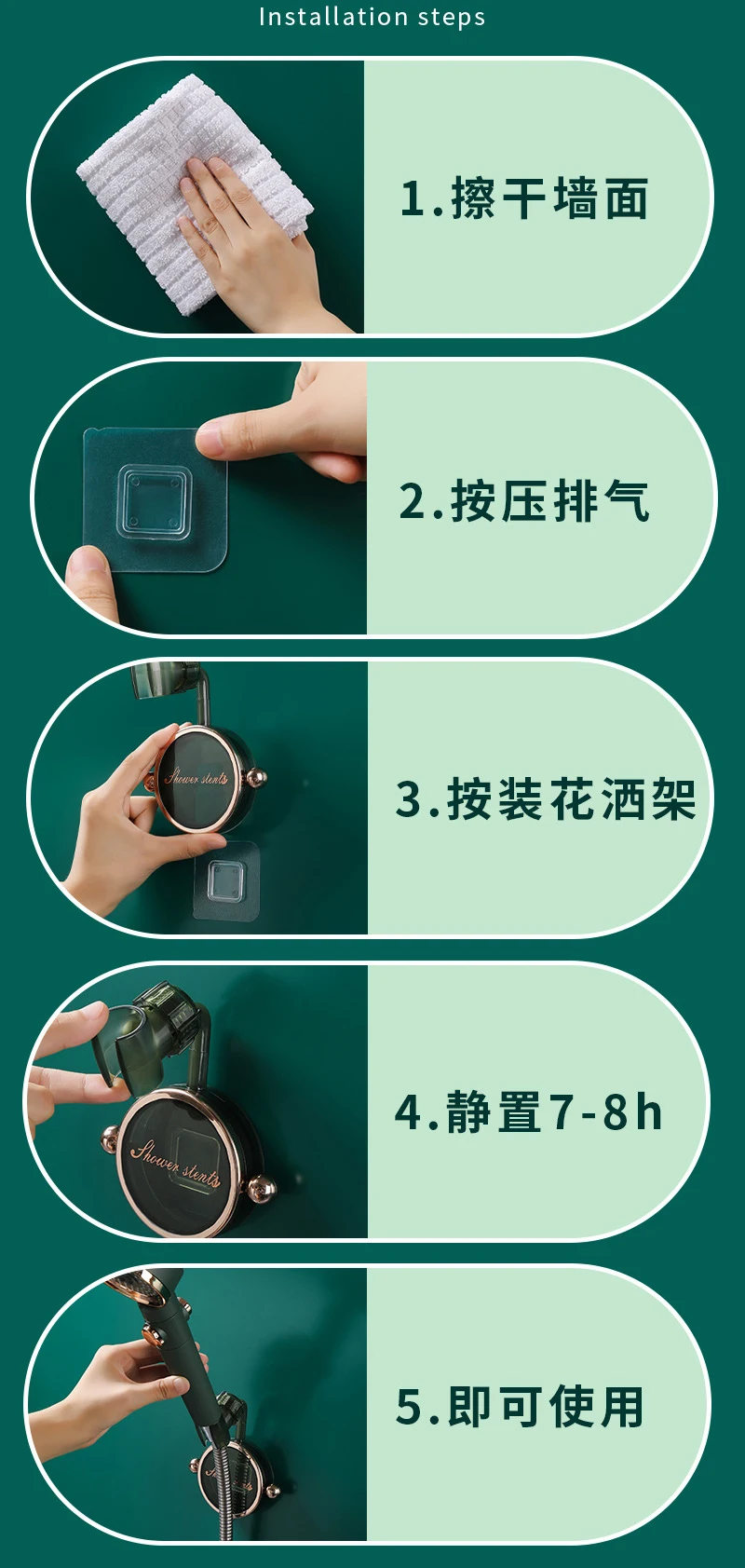 360° Universal Shower Head Holder Adjustable Self-Adhesive Showerhead Bracket Punch-Free Wall Mount Stand SPA Bathroom Accessories