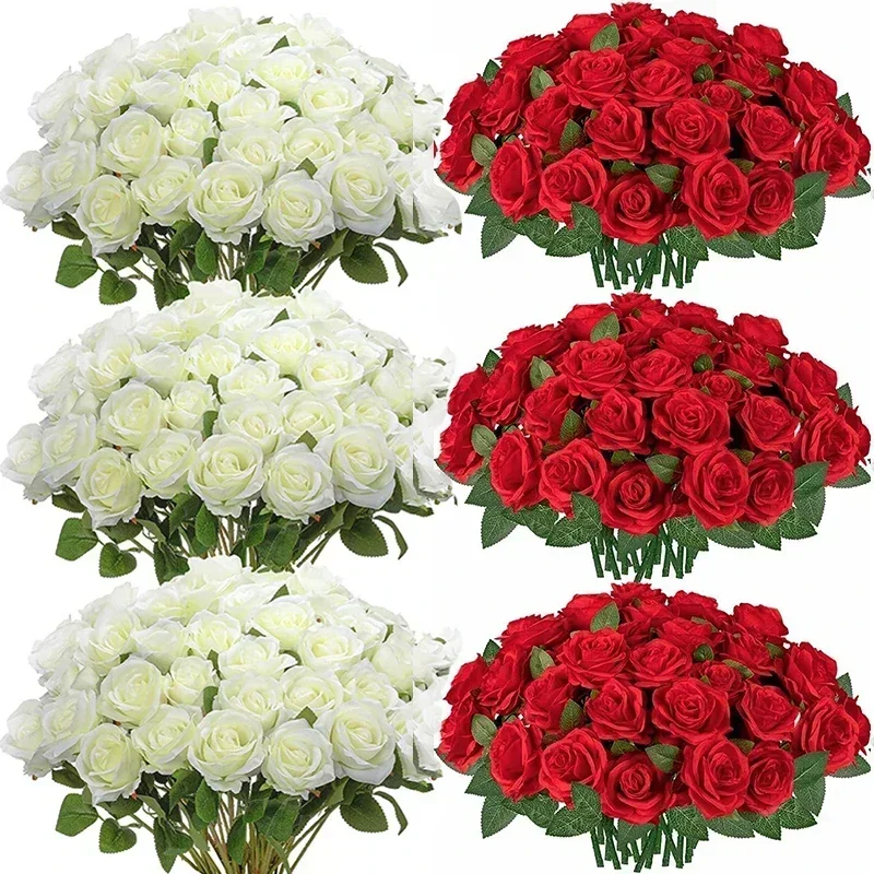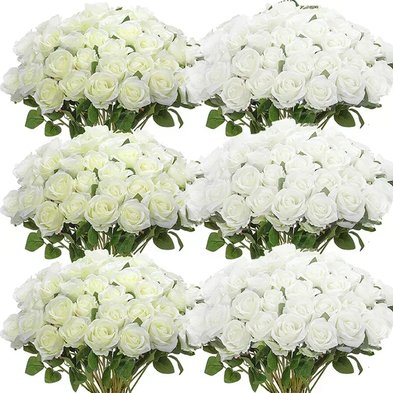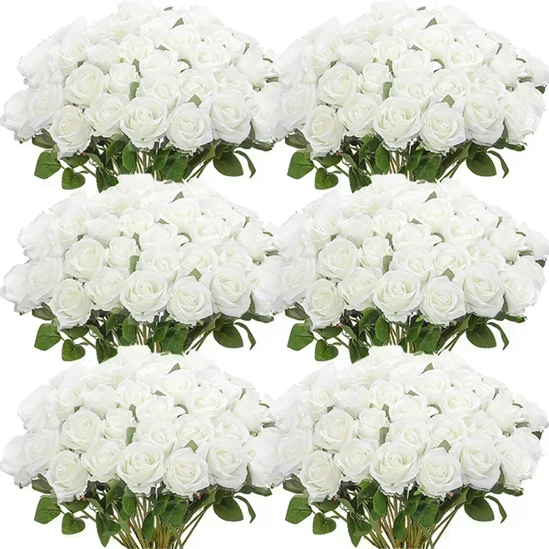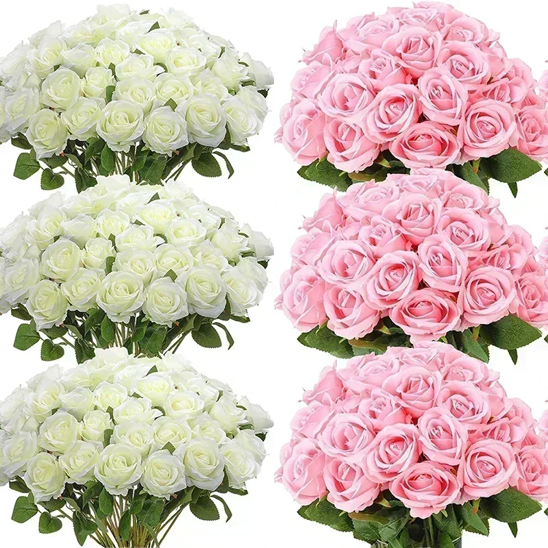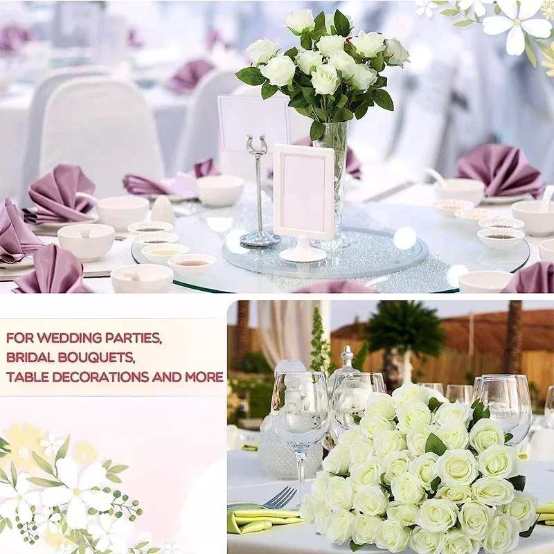 50 Pcs Artificial Rose Flower Silk Roses Bouquet Real Looking Fake Roses for Home Wedding Centerpieces Party Decorations