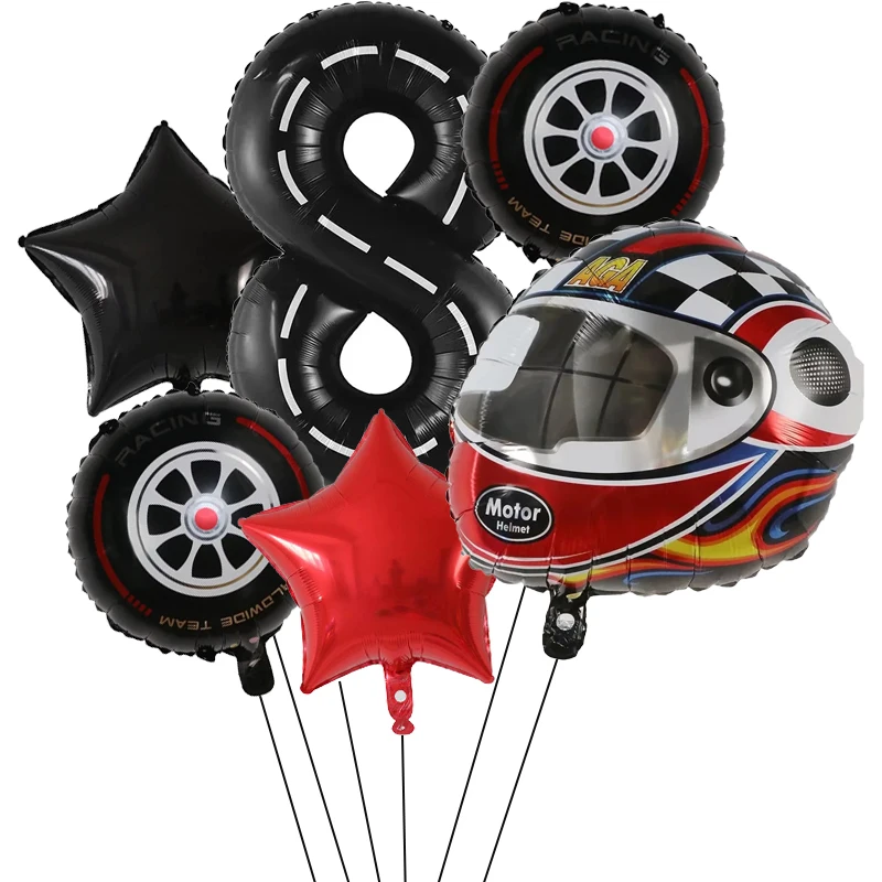 6PCS Motor Helmet Balloon Wheel Tire Racing Balloons Birthday Decor Boys Race car Dirt Bike Motorcross Hot Wheel Party Supplies