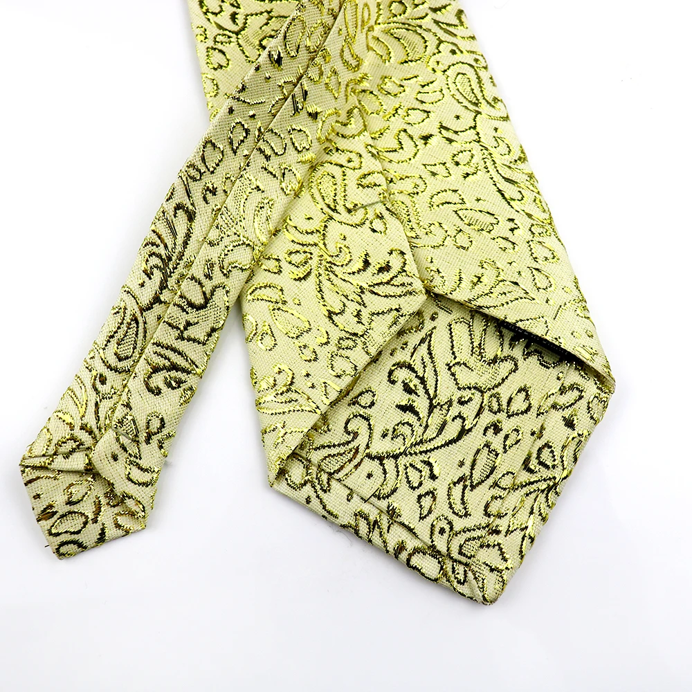 8CM Men Big Necktie Golden Color Polyester Paisley Ties For Men Party Wedding Business Formal Neckwear Floral Ties Women Trendy