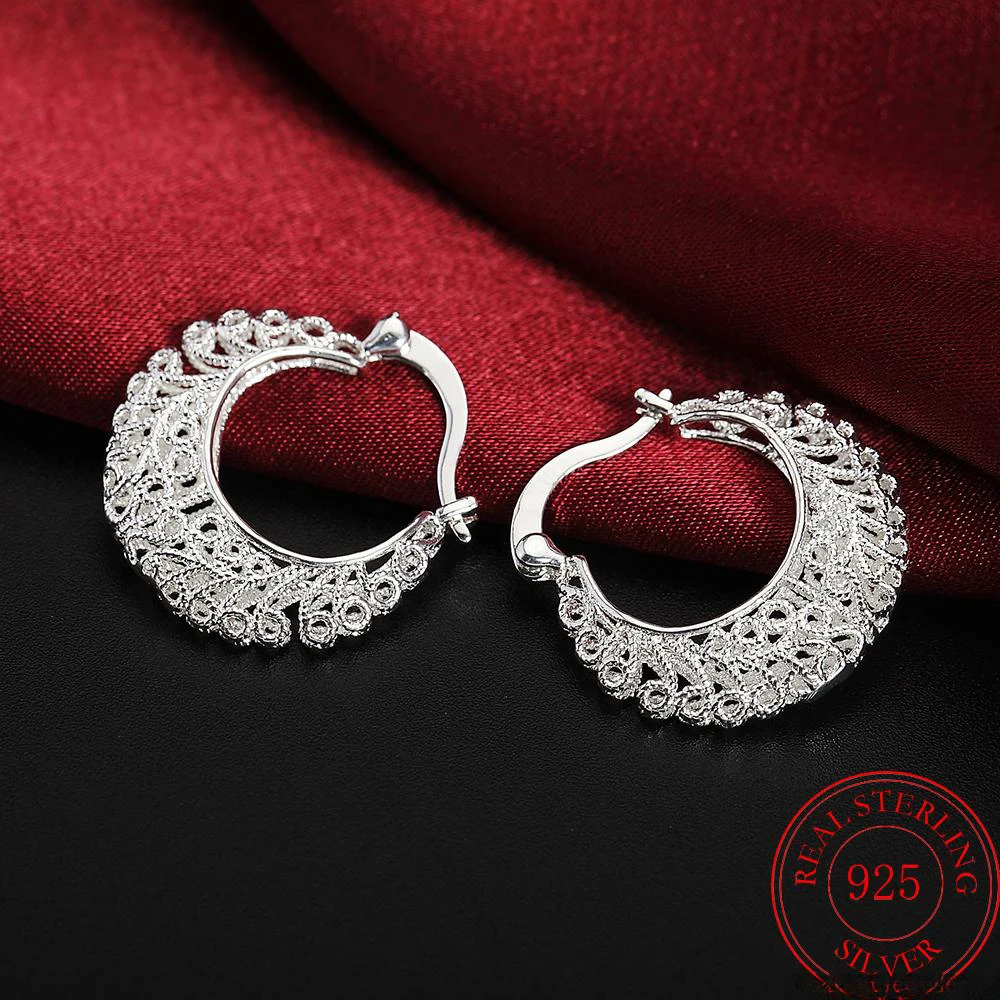 925 Sterling Silver Flower Circle Small Hoop Earrings For Women Sleeper Earrings Trend Wedding Jewelry Christmas Gift Chshine