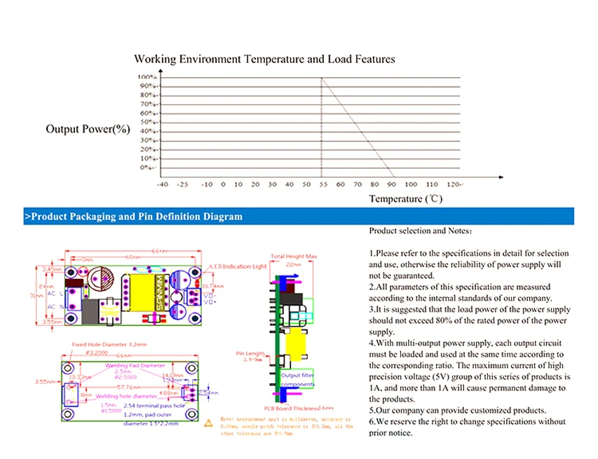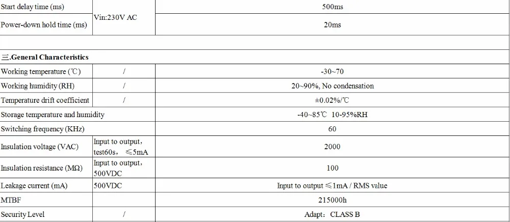 11. Output voltage: 5V+-0.15v no load and full load,light load minus 0.1V,rebound when heavy load,50% load ripple 60mV