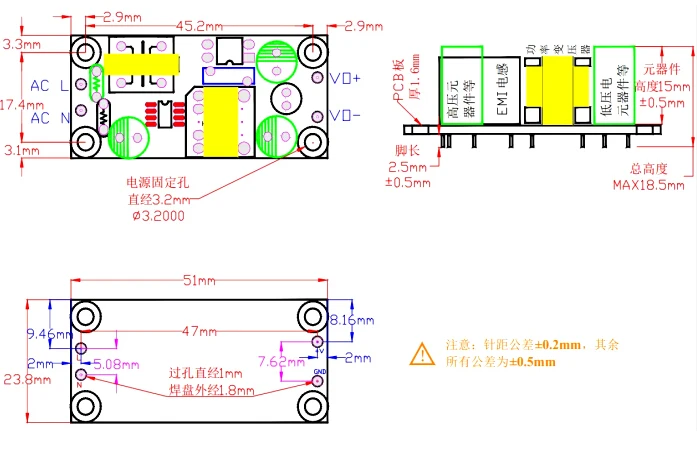 With temperature protection,over current protection and short circuit protection,high and low voltage isolation,AC85 ~ 265 v wide voltage input,ac/dc current,431 precision voltage stability DC5V output