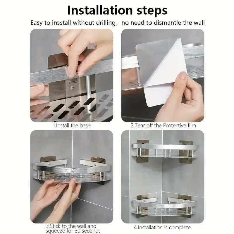 Bathroom Shelf Wall Mounted Corner Storage Shelves Shampoo Holder Cosmetic Rack Shower Drain Basket Bathroom Organizer