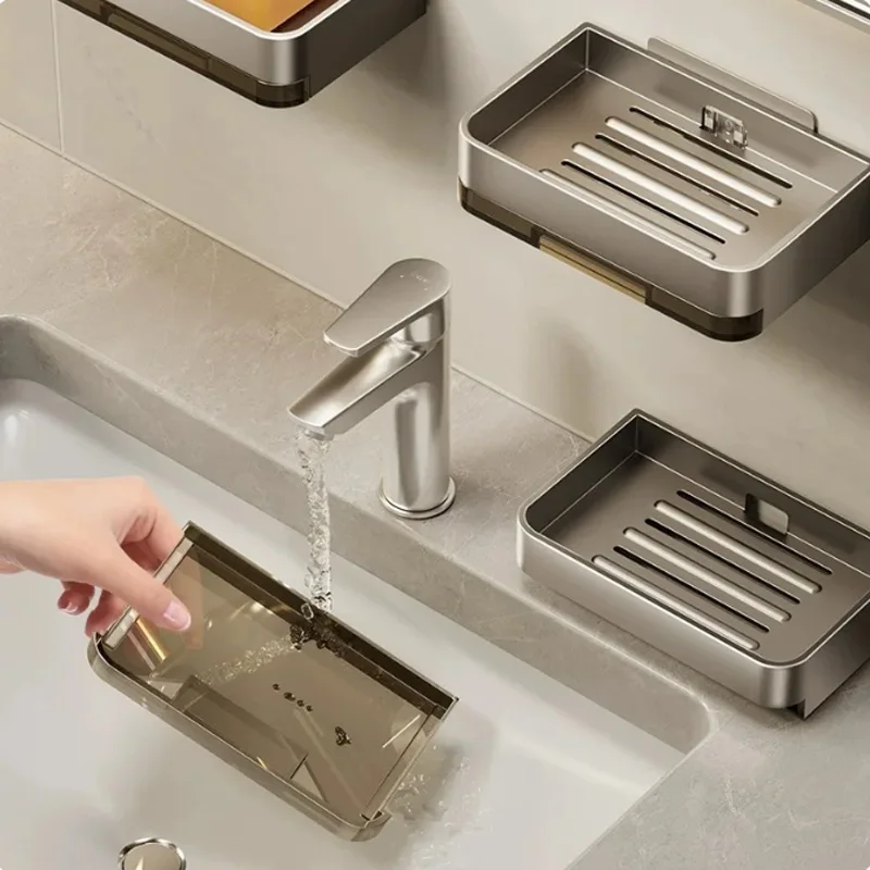 Bathroom Soap Holder Free-Punching Wall Mounted Soap Sponge Holder Organizer Double drainage Soap Dish Bathroom accessories