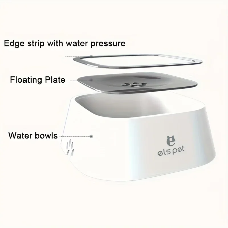 2.Slow Water Feeder: The automatically adjustable floating disk design slows down the drinking speed of your pet. When your pet’s tongue touches the floating disk, it sinks and the water undulates.