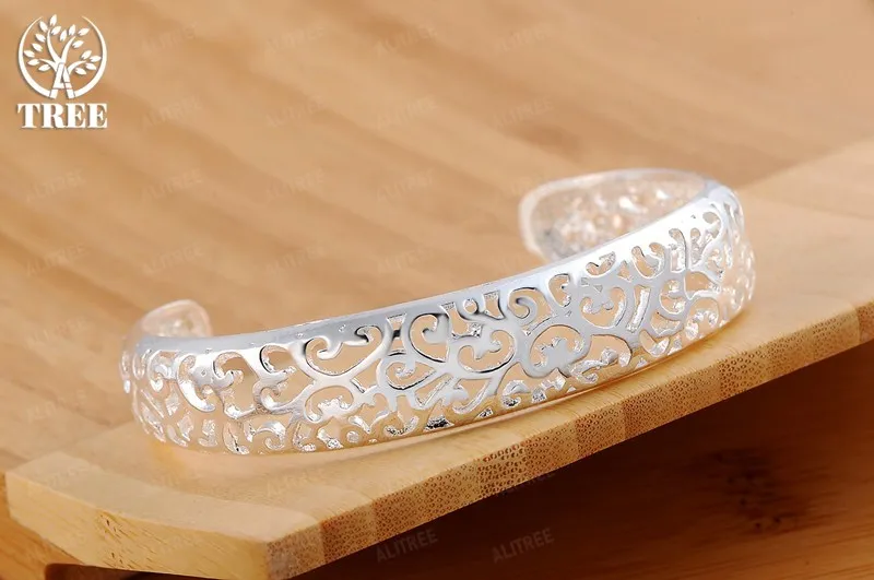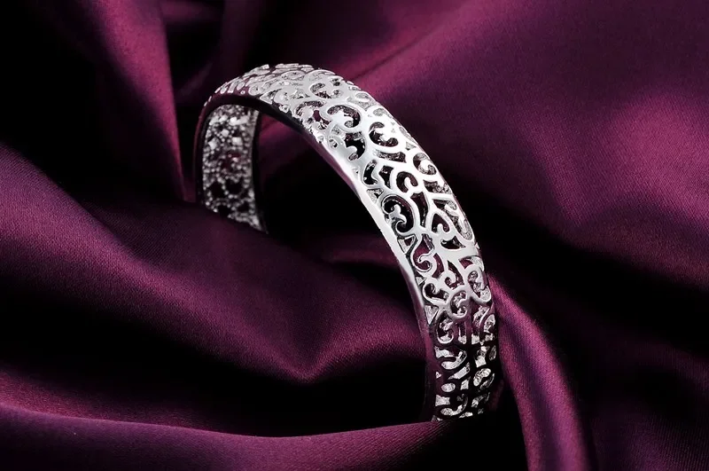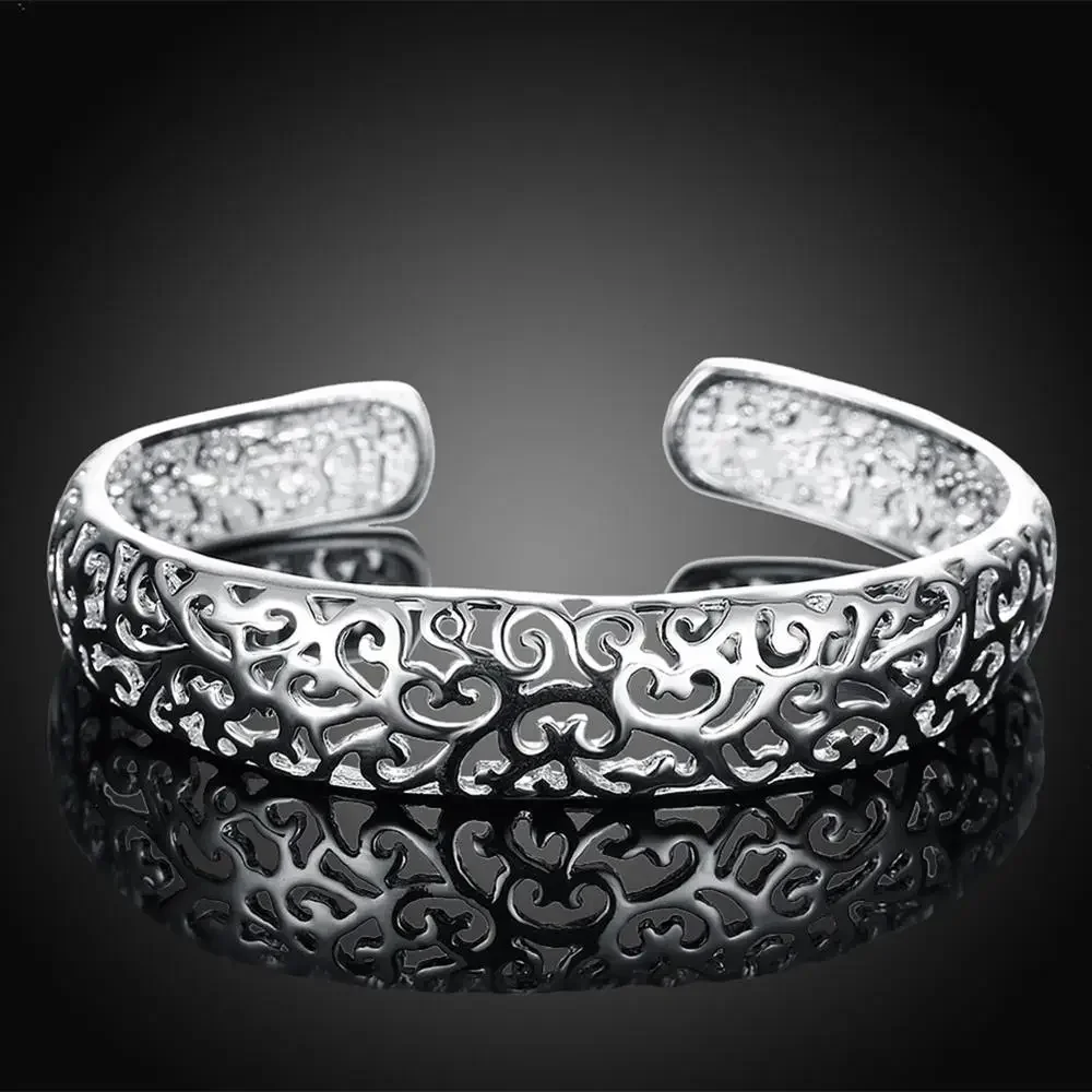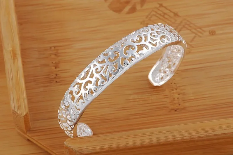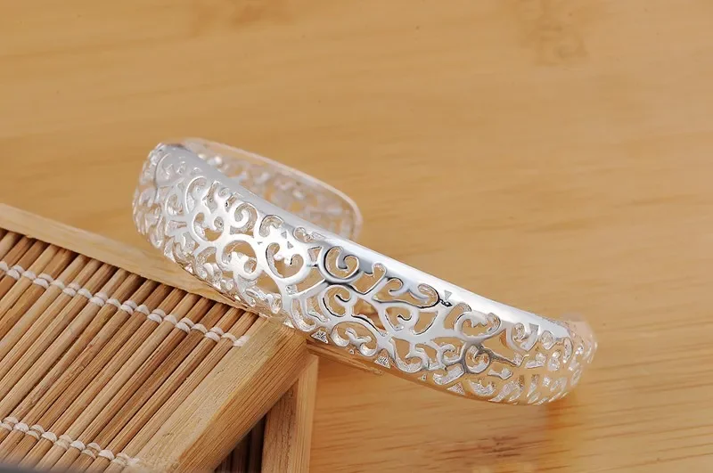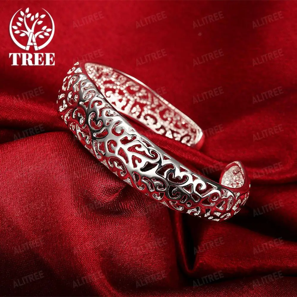 Fine Hollow pattern bangles 925 Sterling Silver cuff Bracelets for Women adjustable Fashion luxury Jewelry wedding Party Gifts