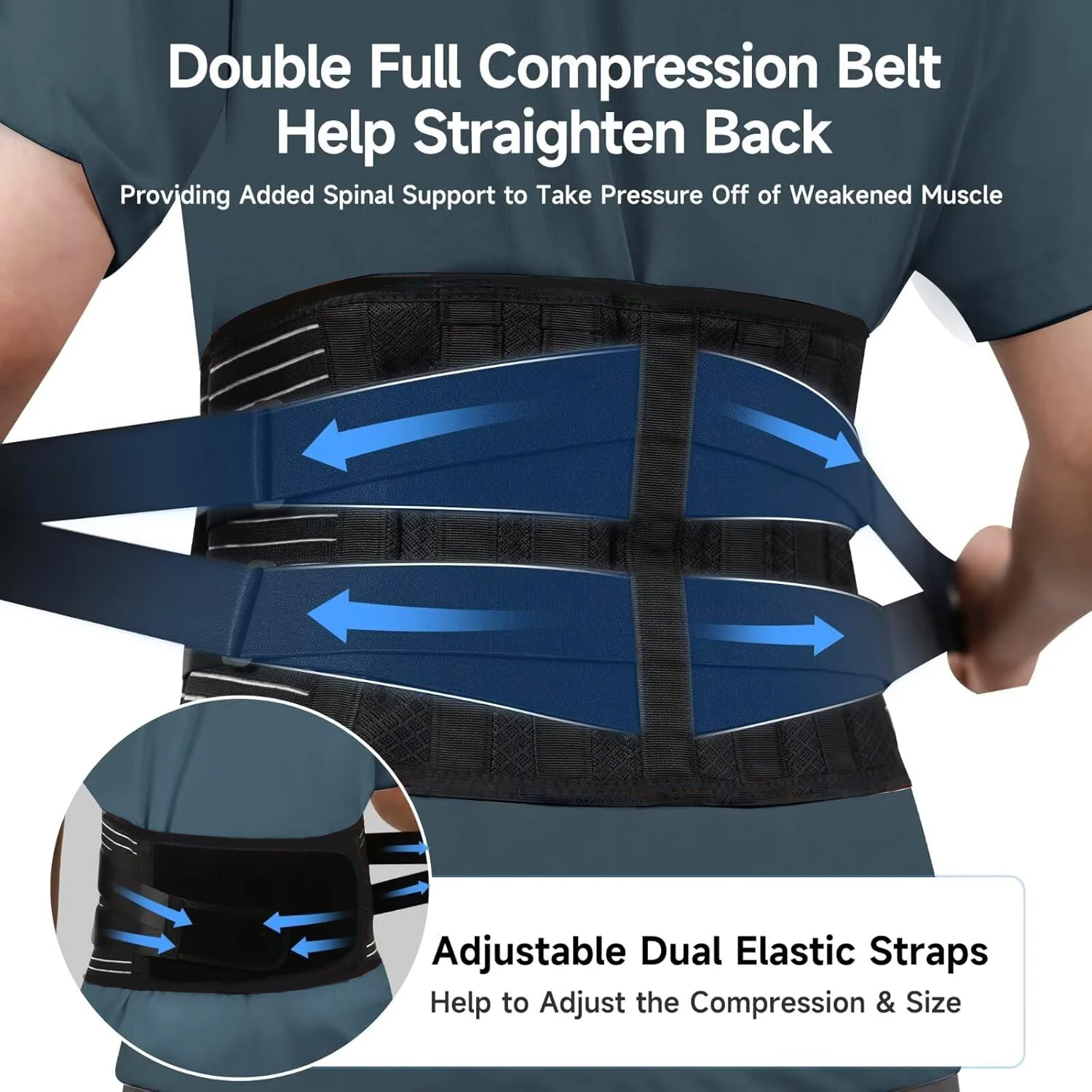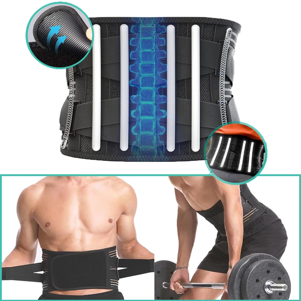 The Back brace contains 4 Memory-aluminum stays that are quadruple harder than the commonly used PP strips,and 2 steel springs placed along the waist side, offer 360° stronger vertical support to lower back,prevent excessive rolling of your muscles and decrease the pressure on your discs.