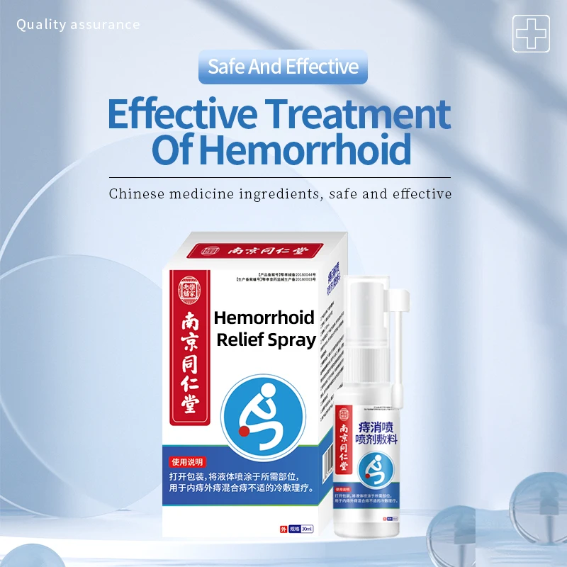 1. Clean the anus and keep it dry. For external haemorrhoids, spray directly onto the haemorrhoids; for internal haemorrhoids, insert the nozzle slowly into the anus and press gently