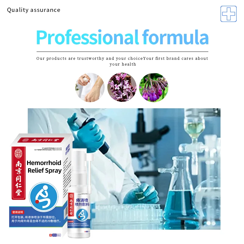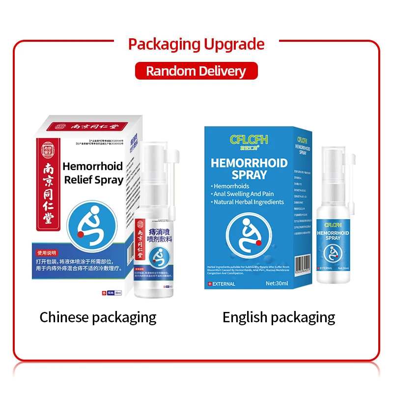 1. Clean the anus and keep it dry. For external haemorrhoids, spray directly onto the haemorrhoids; for internal haemorrhoids, insert the nozzle slowly into the anus and press gently