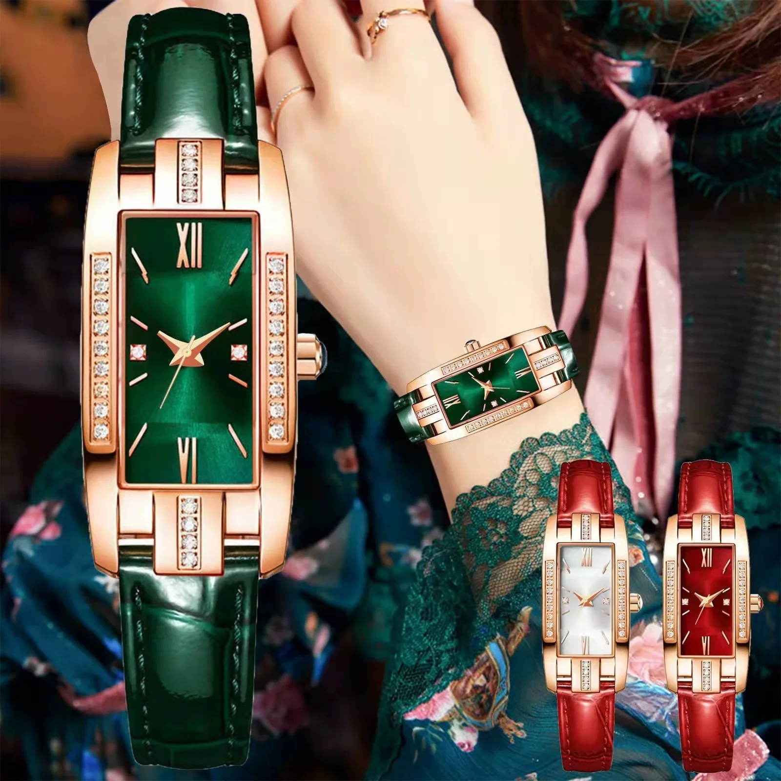 High Quality Classic Retro Women Belt Quartz Square Green Quartz Watch Student Women Wear Clock Luxury Style Montre Femme