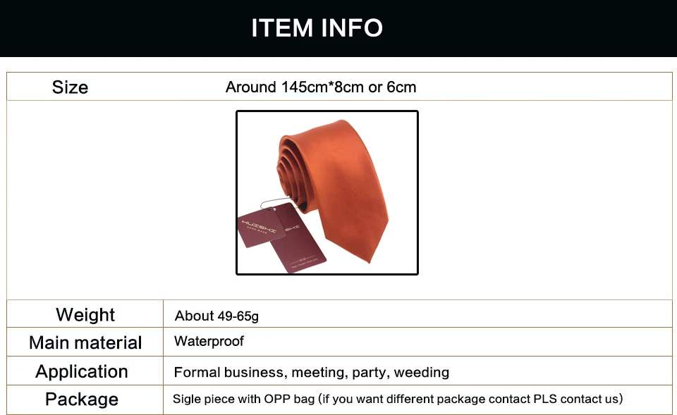 Full name: HUISHI Fashion Man New Classic Dark Orange Tie