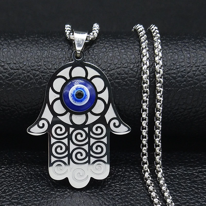 slam Hamsa Evil Blue Eye Necklace Stainless Steel Turkish Eye Chain Bracelet Greek Jewelry ojo turco acero inoxidable