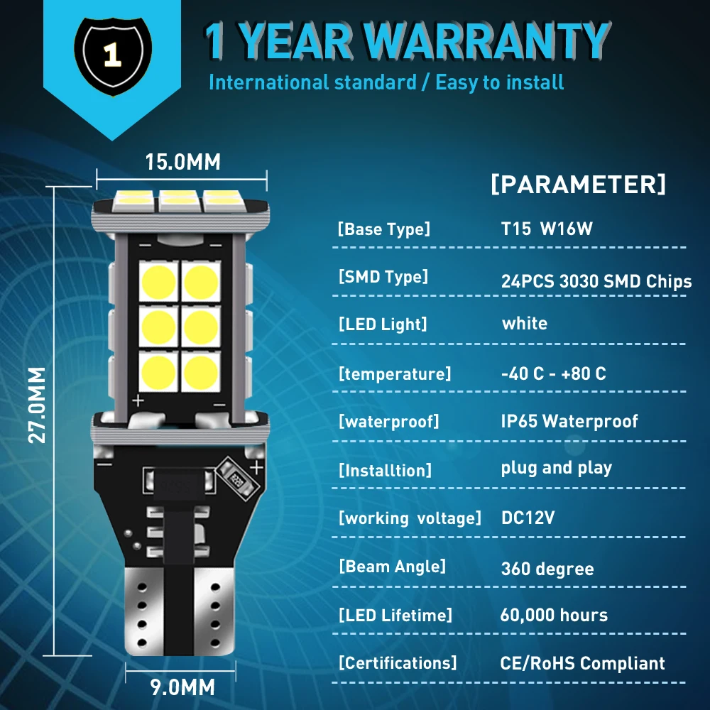 LED Reverse Light W16W Bulbs On Cars Accessories Decoration Automotive Goods For Renault megane 3 2 4 Duster Clio Captur Ssport