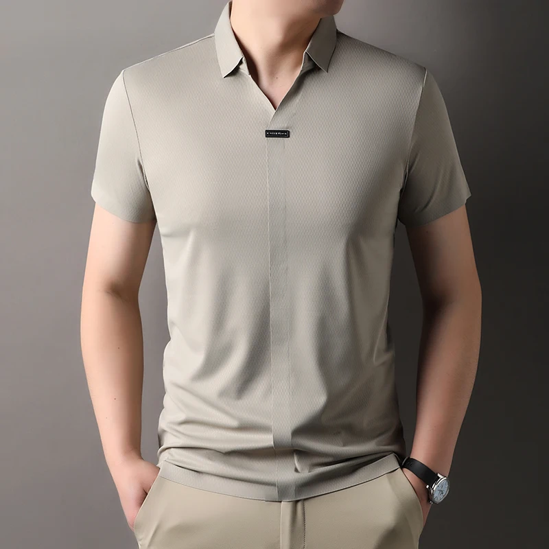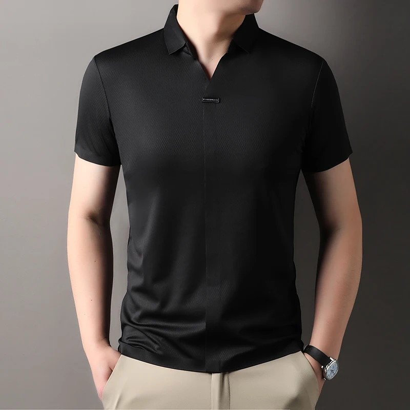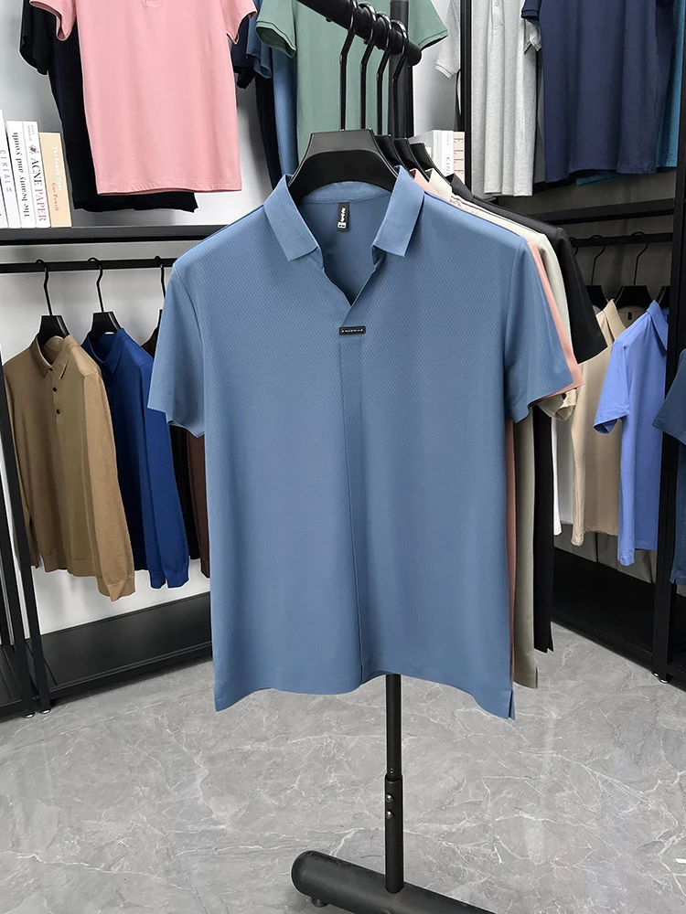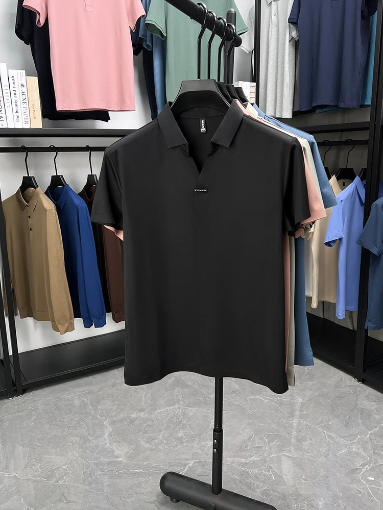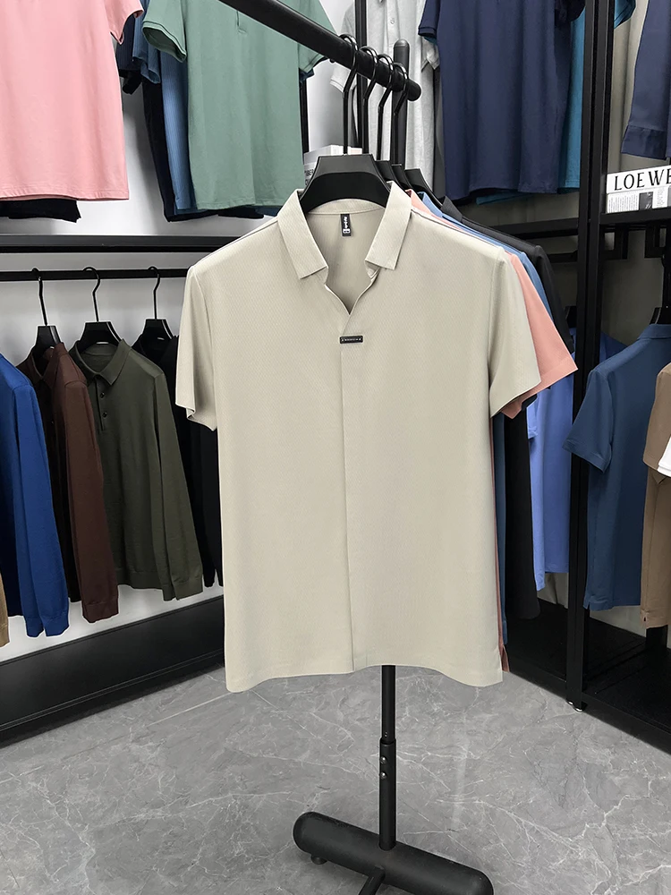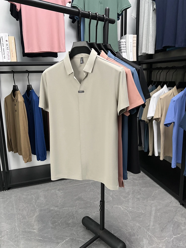 Light luxury men’s short sleeved polo shirt summer new style men’s Korean metal decoration design cool ice silk casual T-shirt