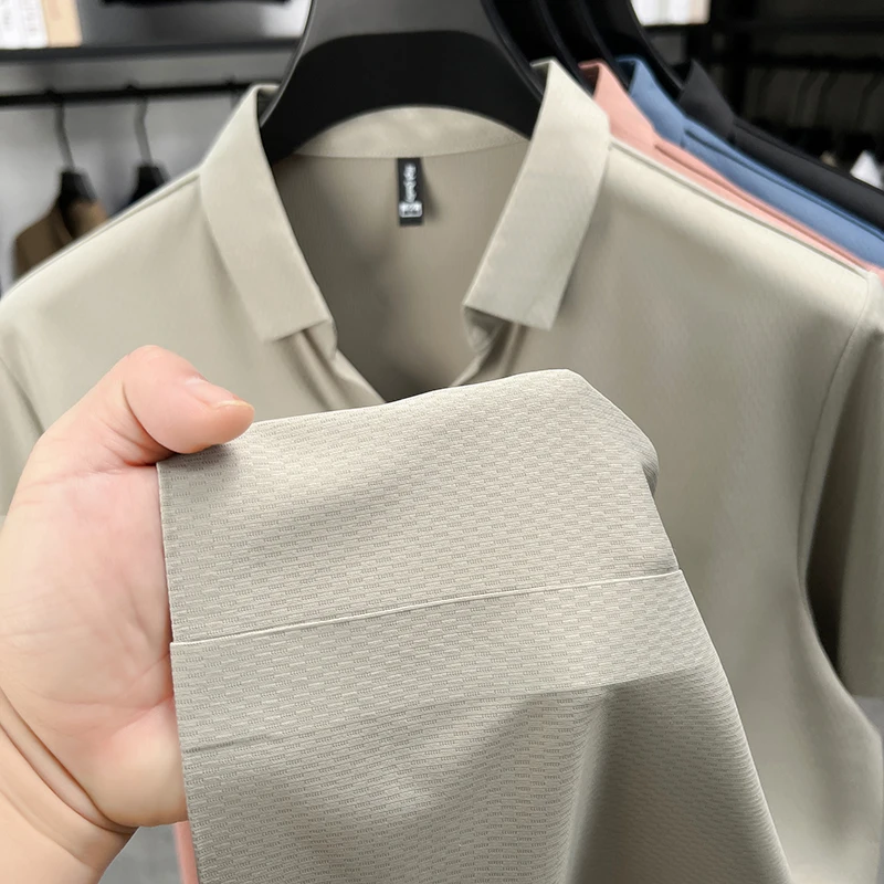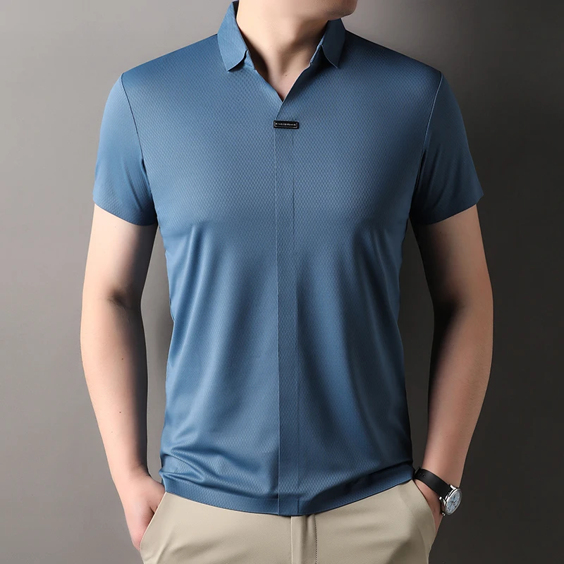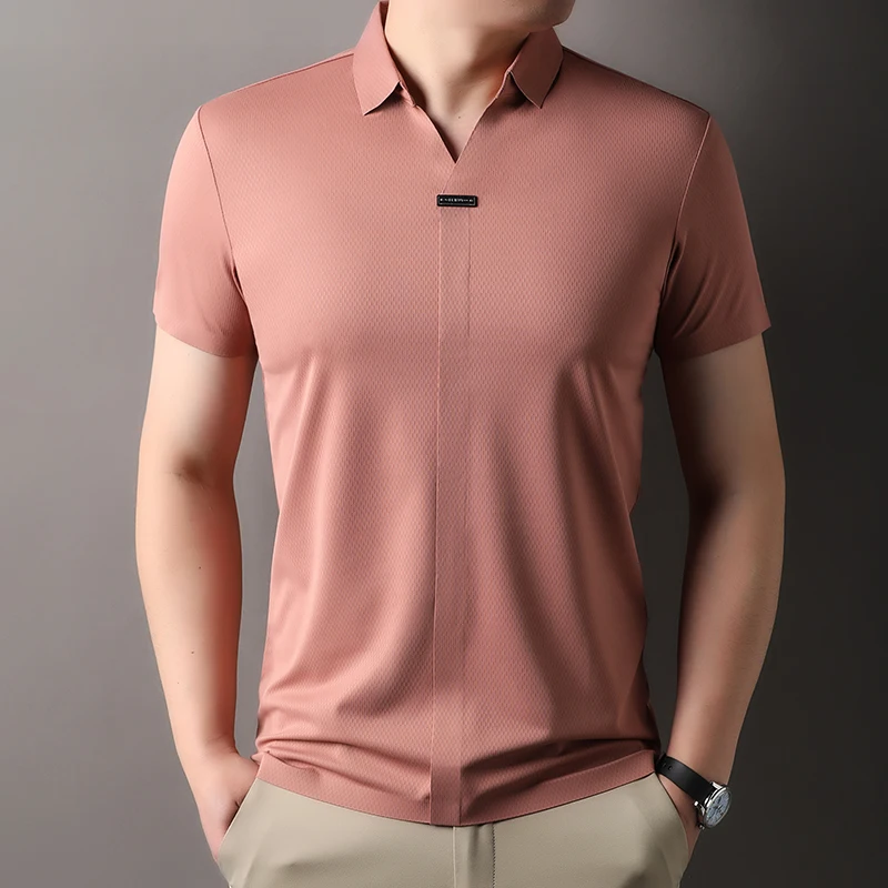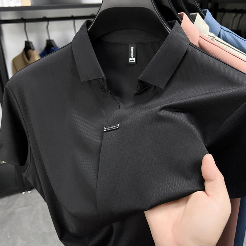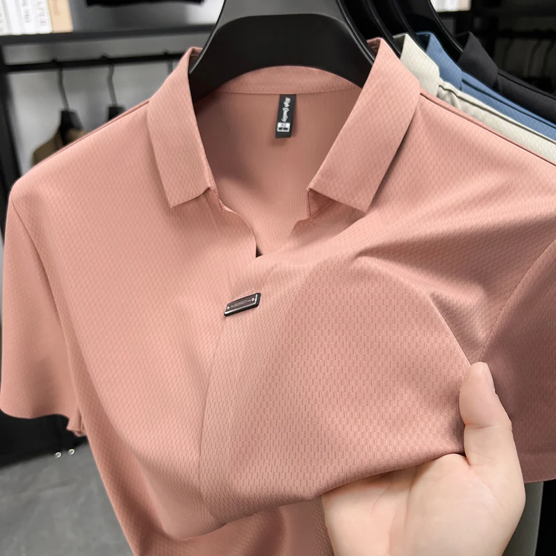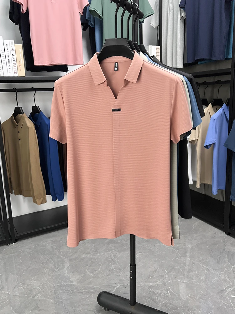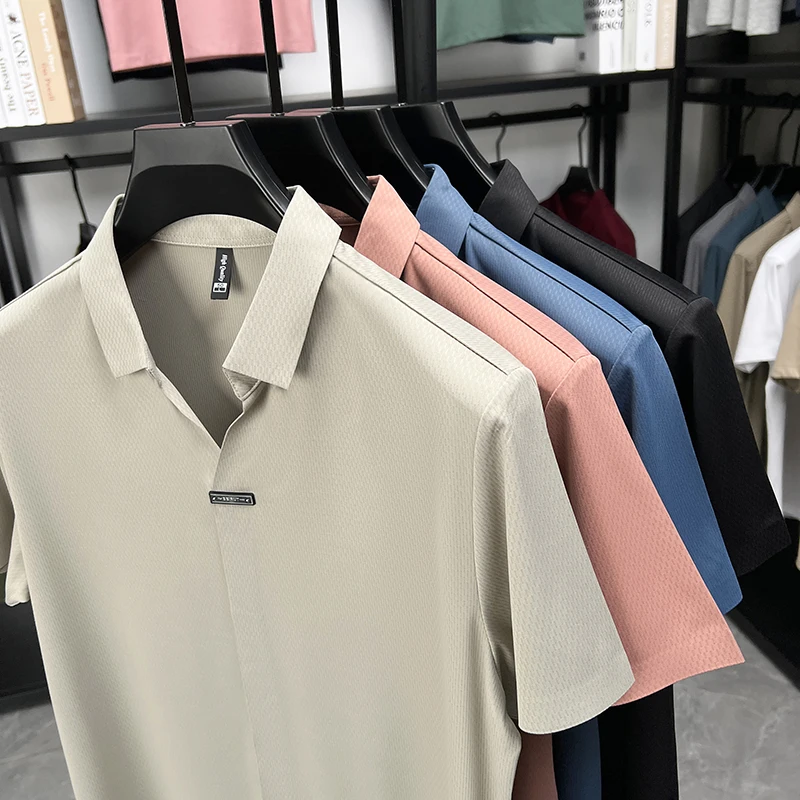Light luxury men’s short sleeved polo shirt summer new style men’s Korean metal decoration design cool ice silk casual T-shirt