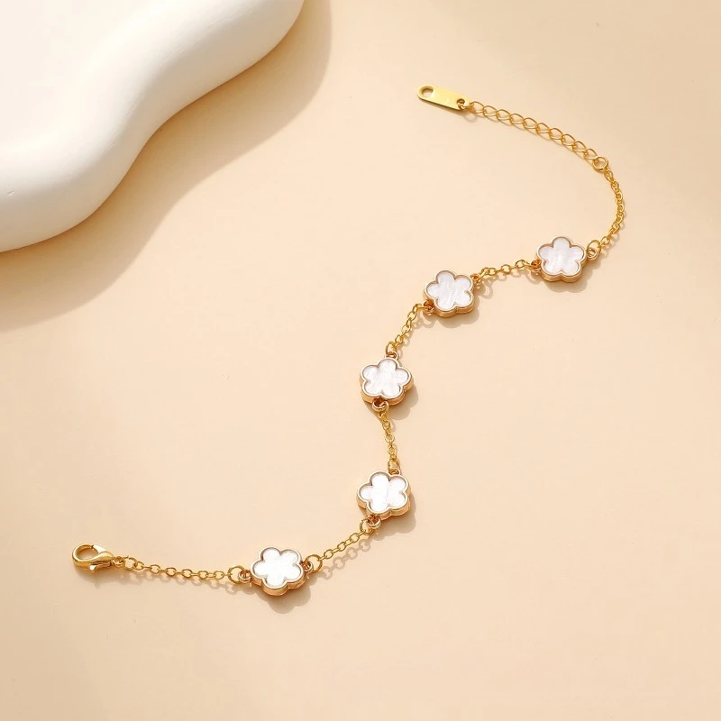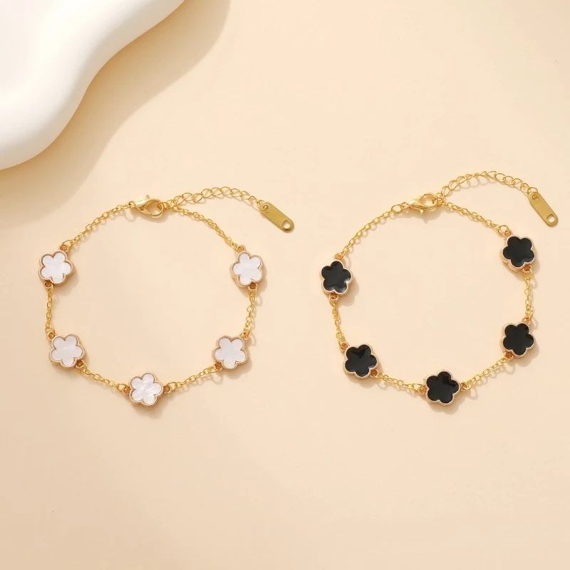 Lucky Clover Women’s Hand Bracelets Double Sided Flowers Jewellery Gifts Stainless Steel Bracelet Gold Plated Bracelets Man