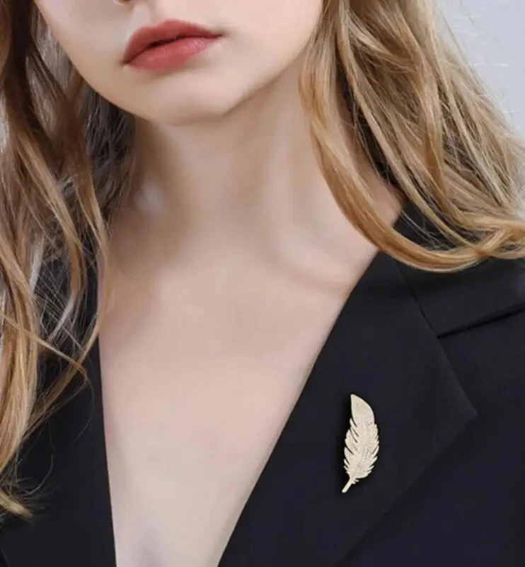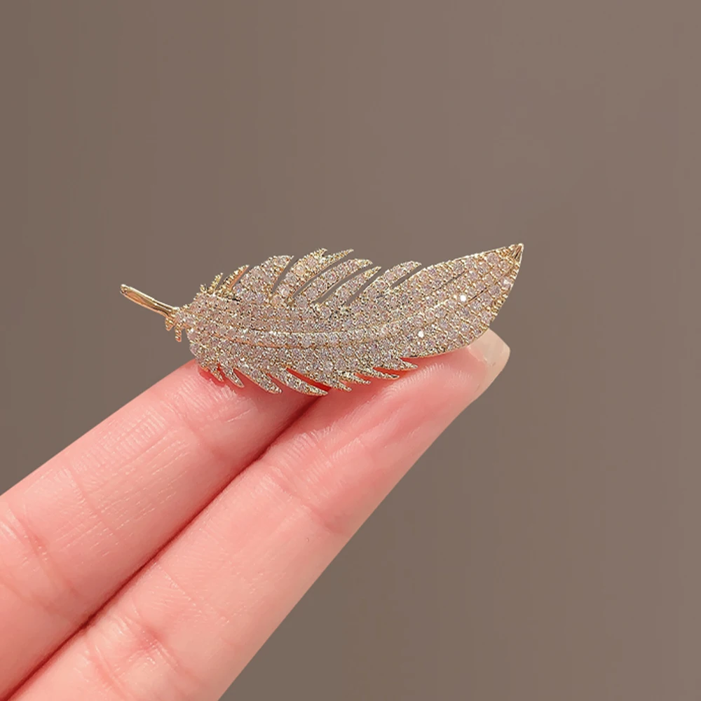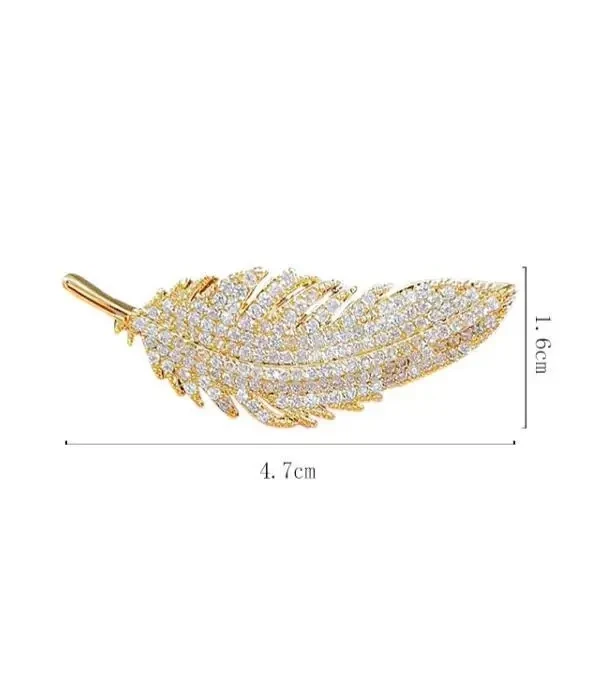 Luxury Gold Color Crystal Feather Brooches For Women Rhinestone Alloy Plant Brooch Lady Party Safety Pins Jewelry Gift
