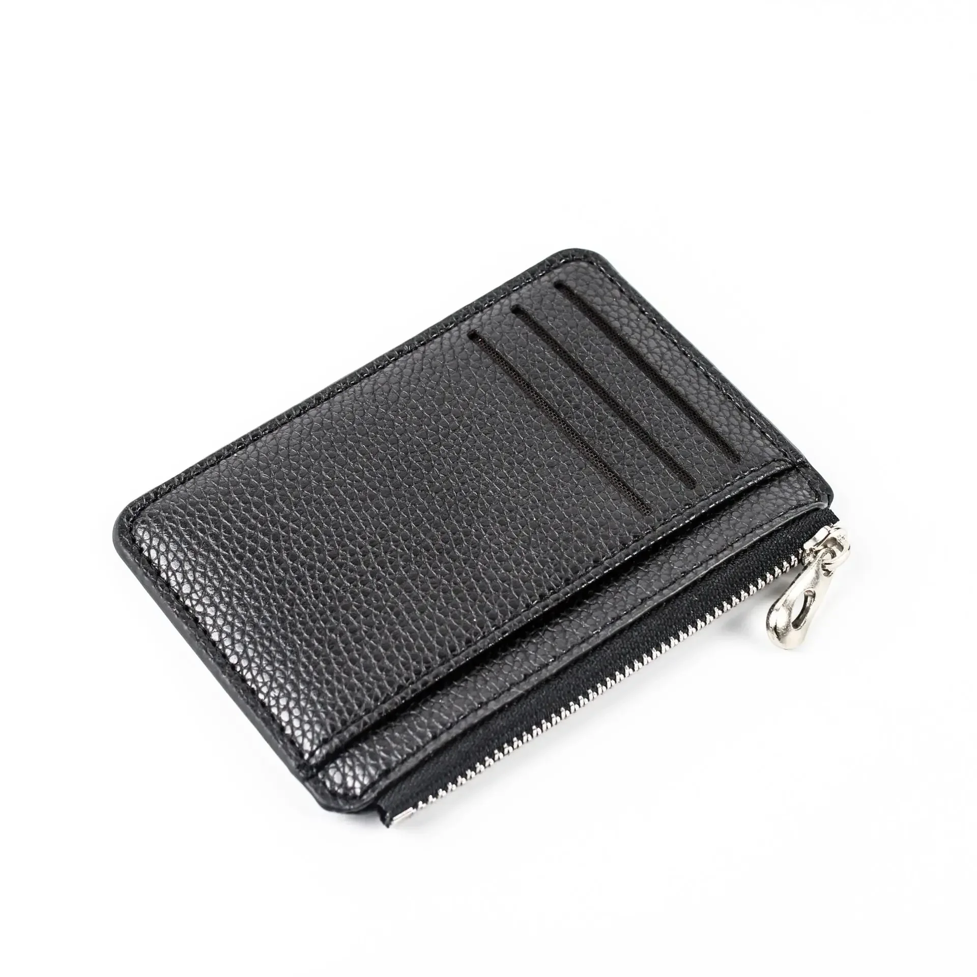 Mini Zipper Card Bag Slim ID Bank Purse Wallet Credit Organizer Portable Small Slim Ultra-thin Short Purse for Men Black