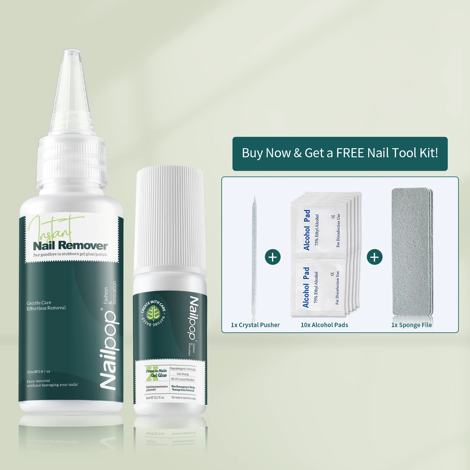 Tired of damaging nail applications and difficult removal? Discover the Nailpop difference with our complete Press & Remove Kit, featuring our revolutionary X Press Ons Nail Gel Glue!