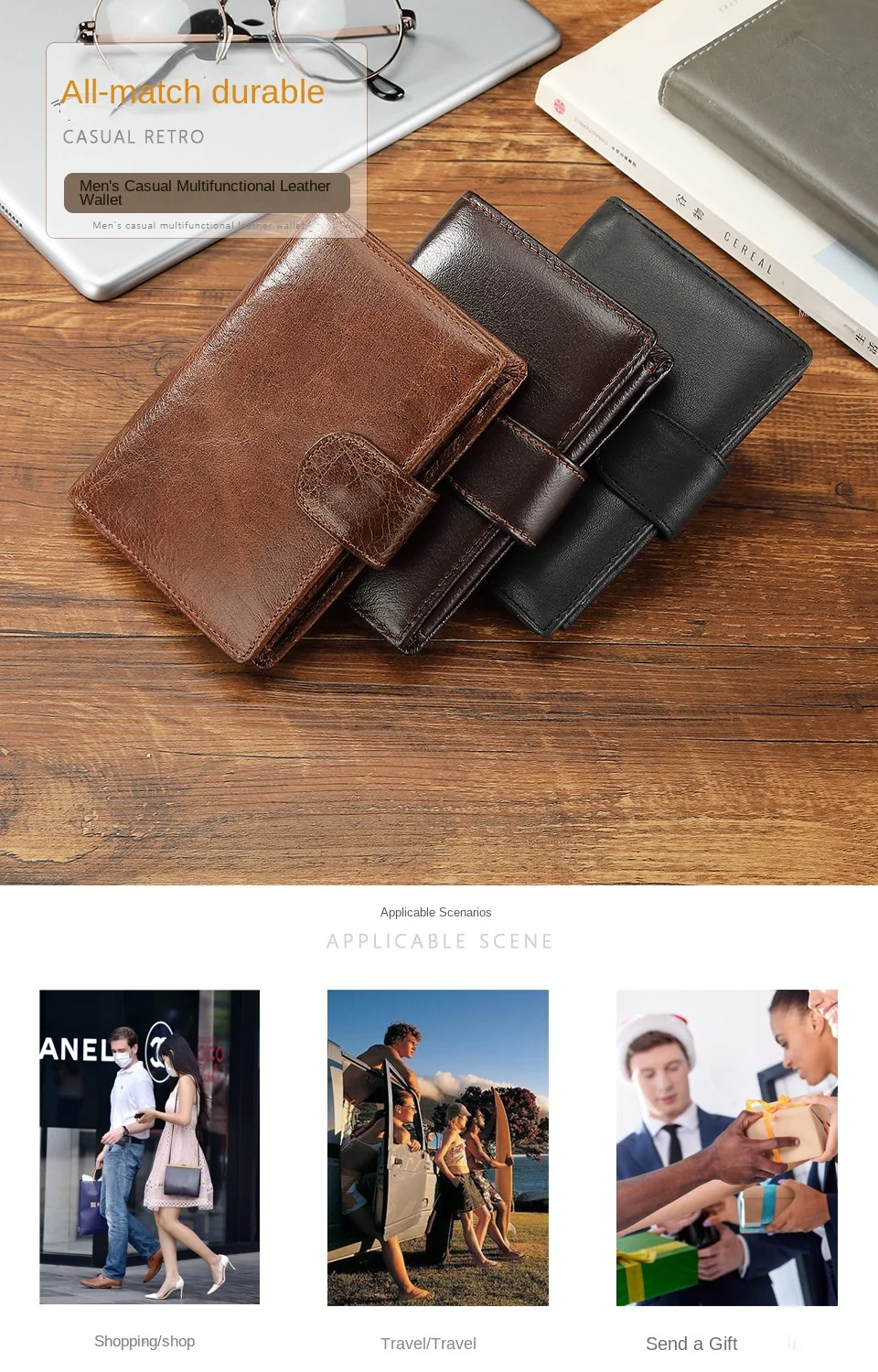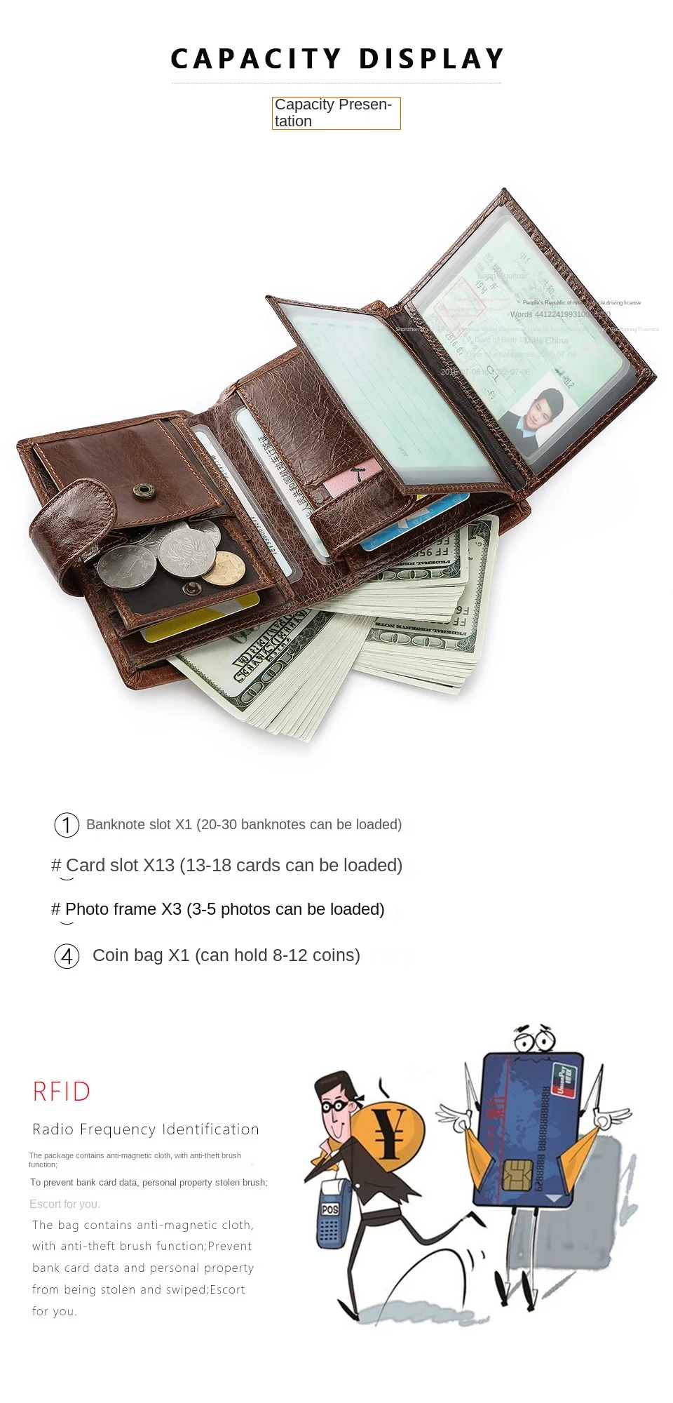 New Brand Men’s Wallet RFID 100% Genuine Cow Leather Short Card Holder Man Purse Male Vintage Pocket Wallet For Men