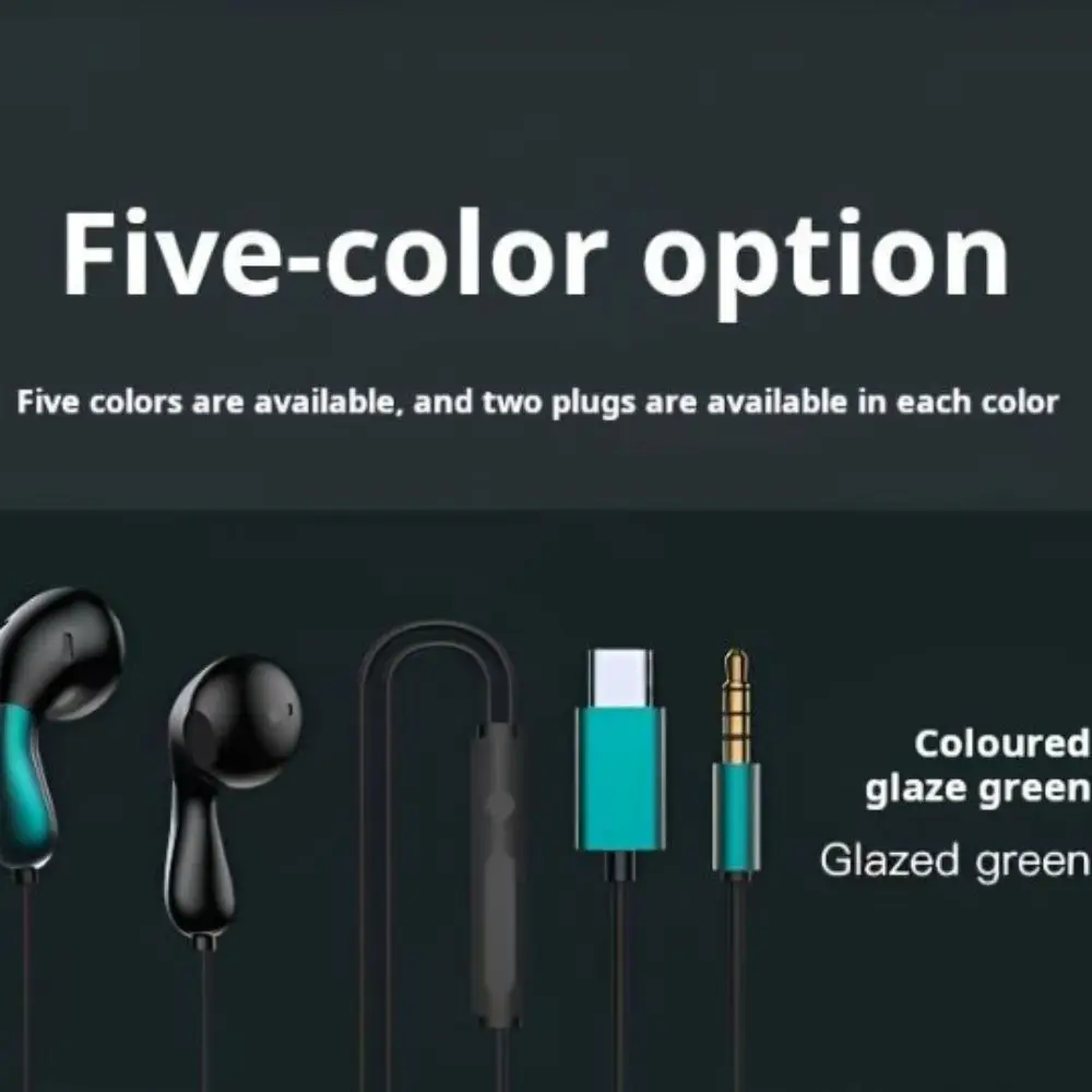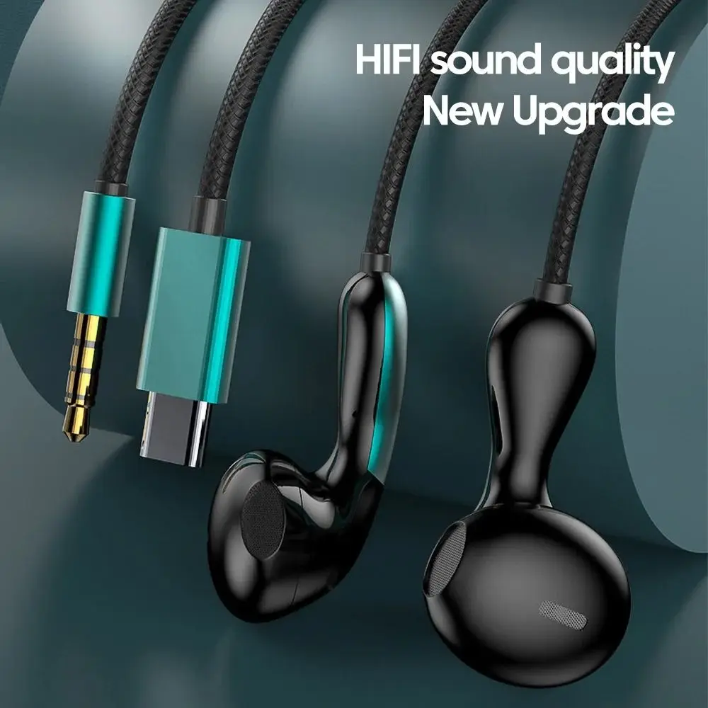 Noise Reduction Wired Headphones In-Ear HD Mic Type C&3.5mm Earphones Double Dynamic Coil Hifi Hifi Stereo Headset Mobile Phone