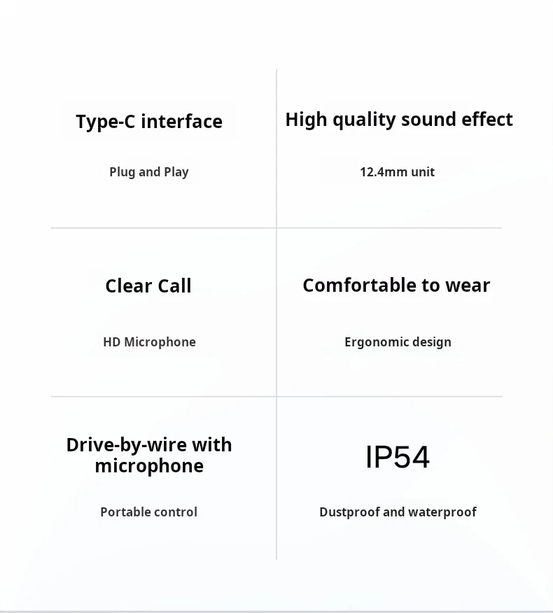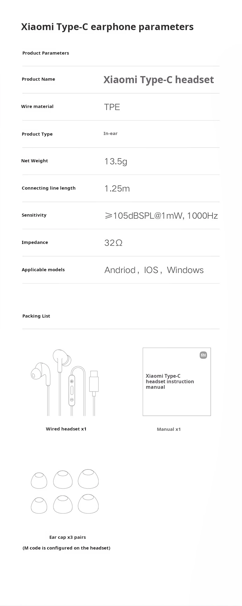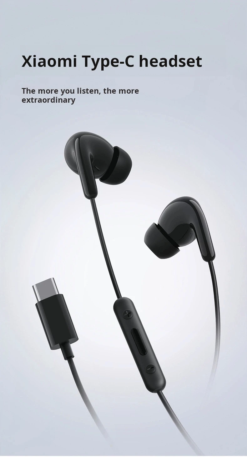 Original Xiaomi Type-C Wired Headset High Definition Call Noise Reduction Earphone With Mic Headphones Sport Waterproof Earbuds
