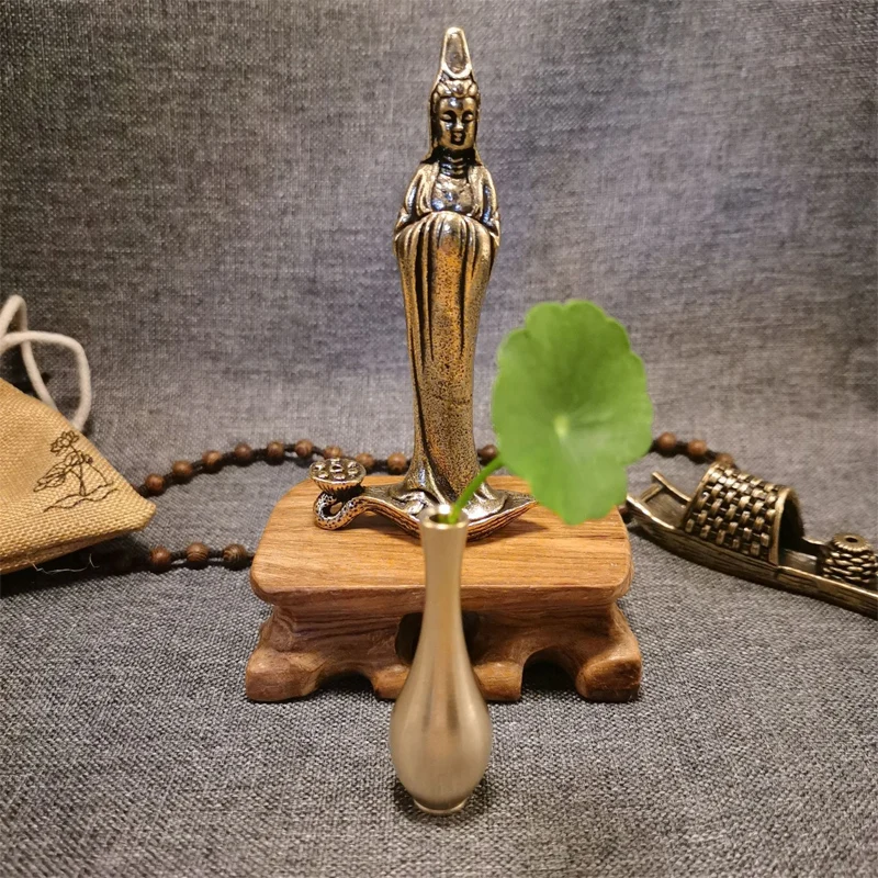 Pure Copper Mini Vintage Vase Ornament Home Decoration Retro Brass Flower Bottle Figurines Modern Light Luxury Decorative Crafts