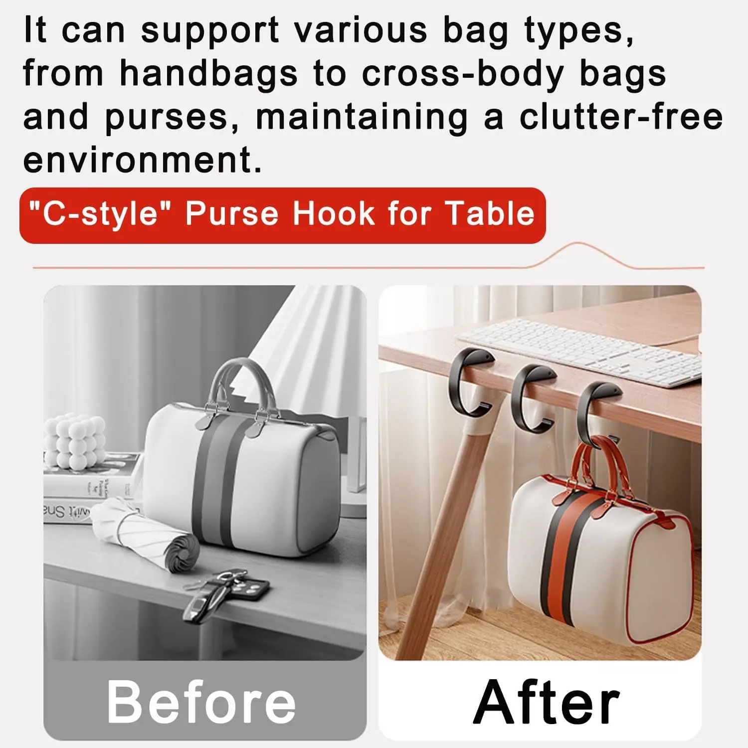 2. Featuring a unique C-letter appearance, this hook is suitable for hanging on tables of any size or thickness, unlike traditional enclosed hooks with specific table thickness requirements.