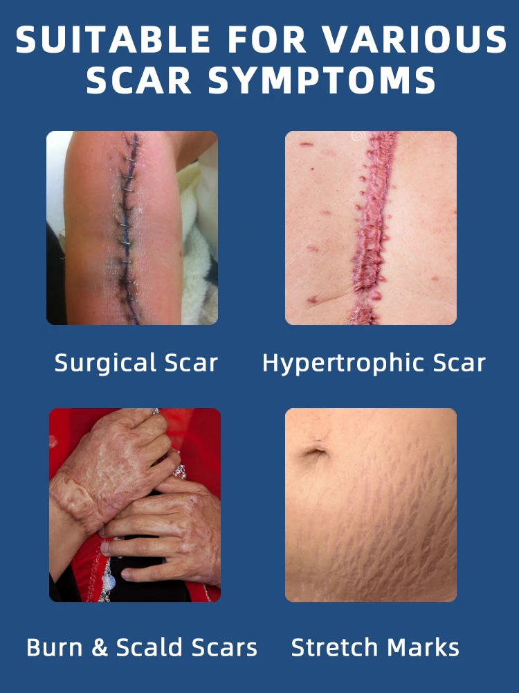 Surgical scars, hypertrophic scars, burn scars, burn scars, keloids, stretch marks repair comparison.