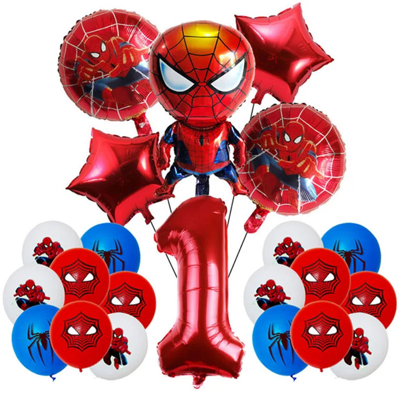 Spiderman Theme Kids Birthday Supplies 3D Great Spider Foil Balloons Disposable Tableware Napkin Cup Birthday Party Decorations