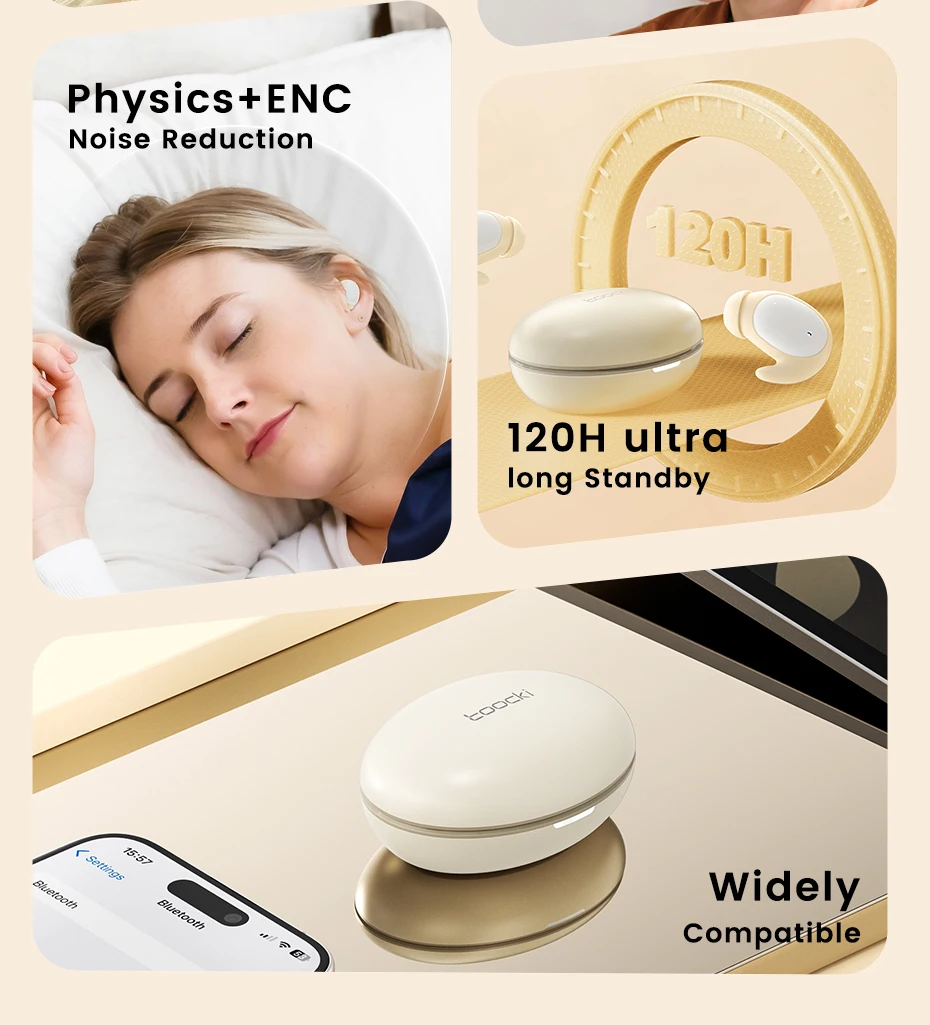 Physics+ENC:Ergonomic in-ear noise cancellation that fits closely to the ear canal, combined with ENC, makes the headphones truly valuable for sleep and everyday use.