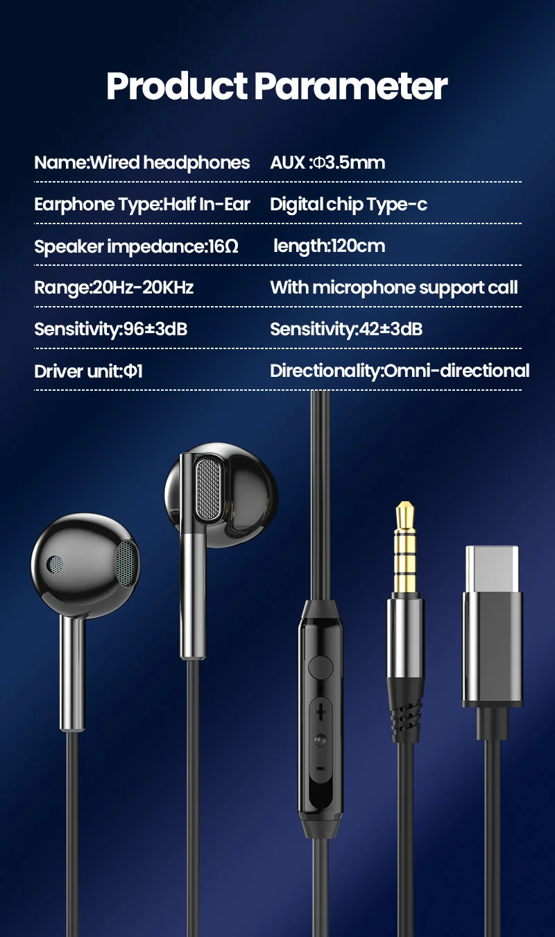 TypeC/3.5mm Wired Headset Gaming Earphones Heavy Bass 3D Surround Stereo USB-C Wired Headphones For Samsung Xiaomi Huawei Phones
