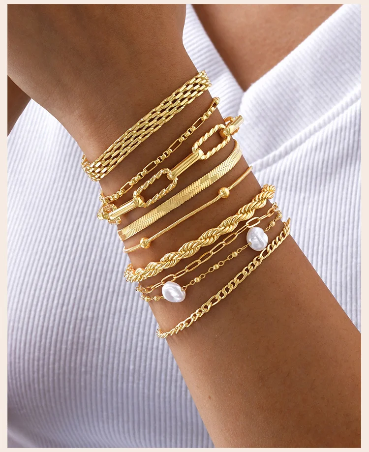 Waterproof Stainless Steel Chain Bracelets For Women , Gold Plated Fashion Stackable Link Bracelet Gifts