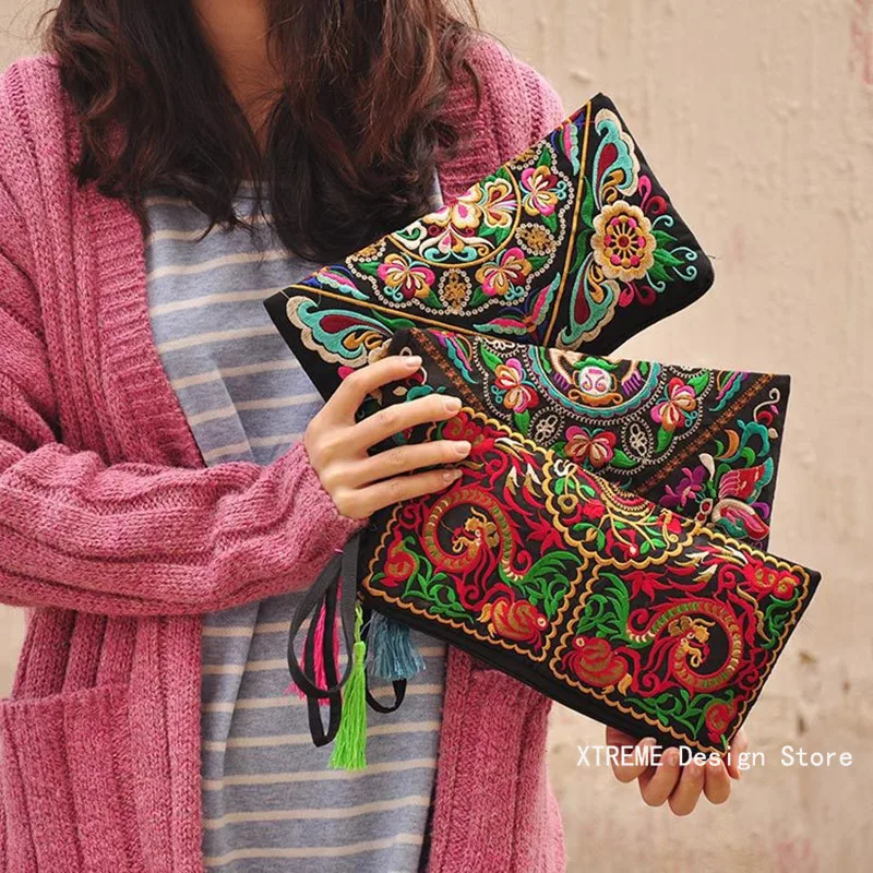 Women Ethnic National Retro Butterfly Flower Bags Handbag Coin Purse Embroidered Lady Clutch Tassel Small Flap Summer Sale Purse