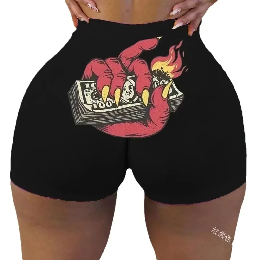 Women High Waist Sexy Yoga Shorts Printed Snickers Mini Shorts Sexy Beach Gril Fitness Booty Skinny Shorts