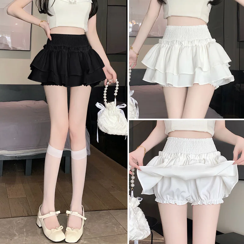 Womens Lace Ruffle Bloomers Shorts Layered Pettipants Victorian Pumpkin Pants Panties Booty Shorts Lolita Dress Safety Shorts