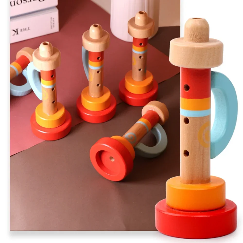 Wooden Children’s Trumpet Instruments Toy Gifts Early Childhood Education Puzzle-Toy Trumpet Safe Harmless and Tasteless Toys